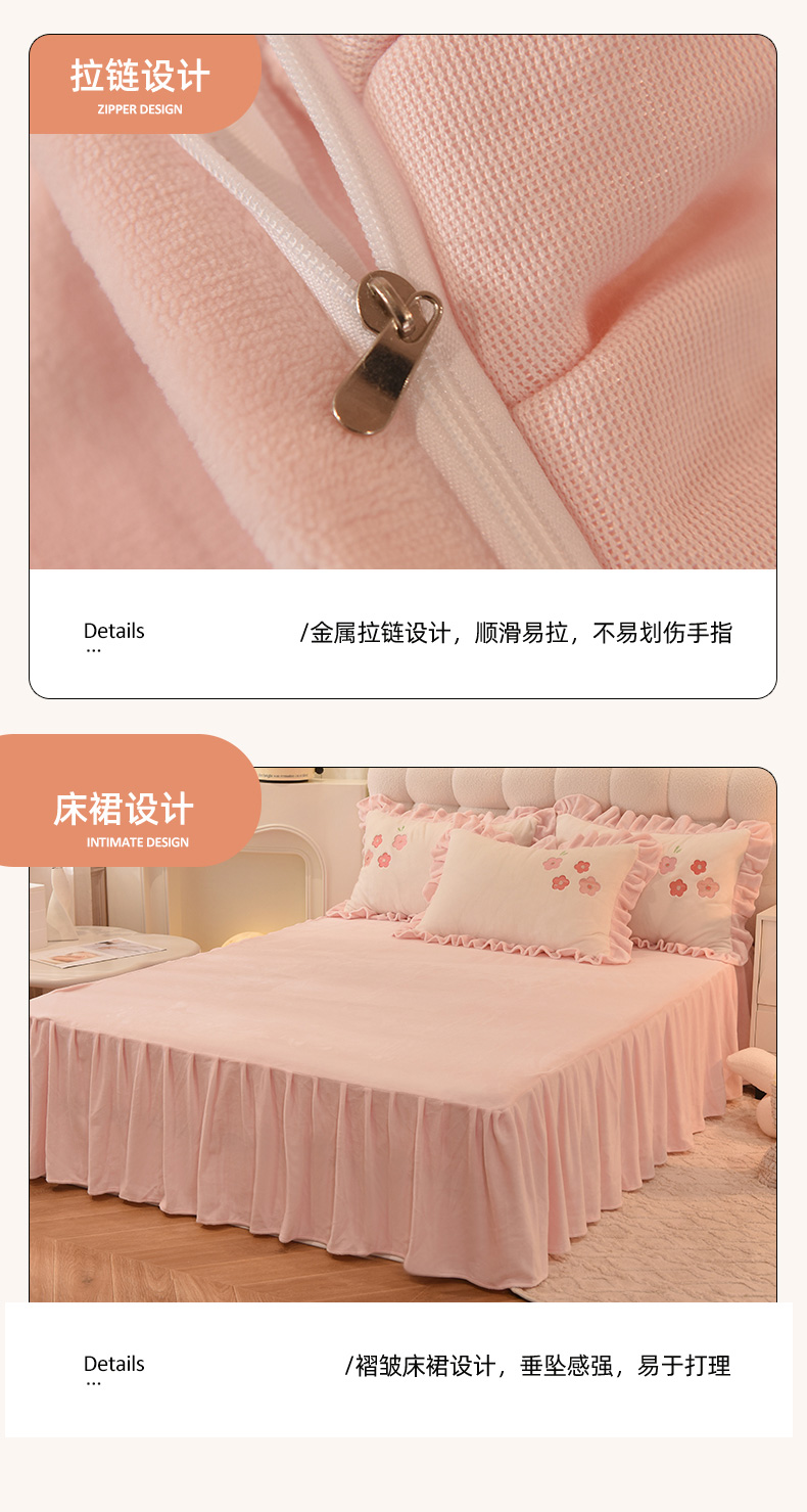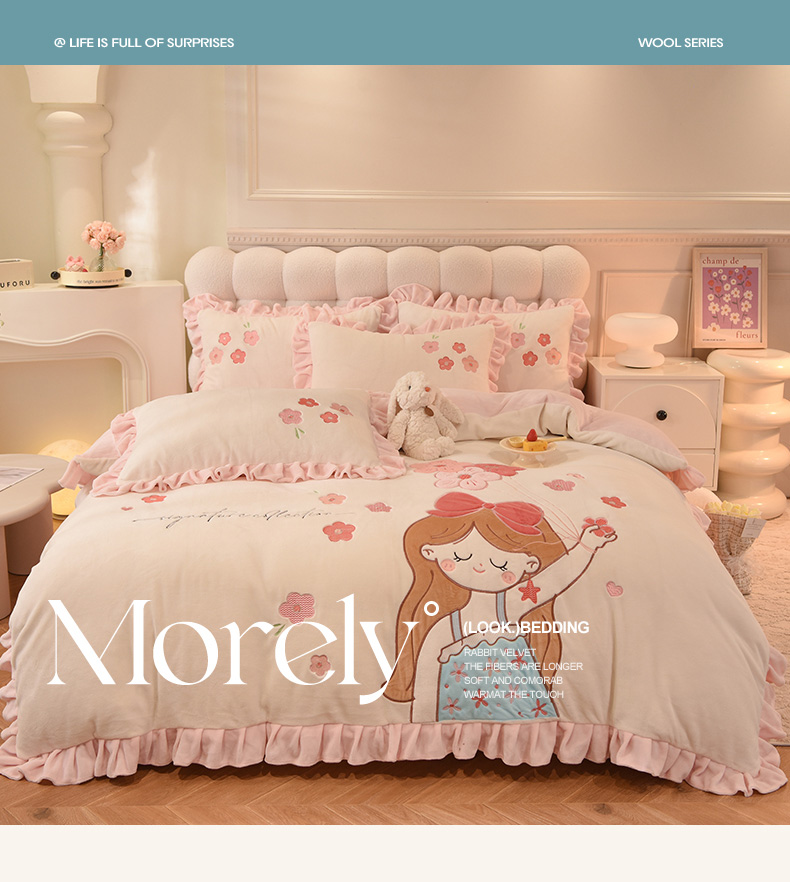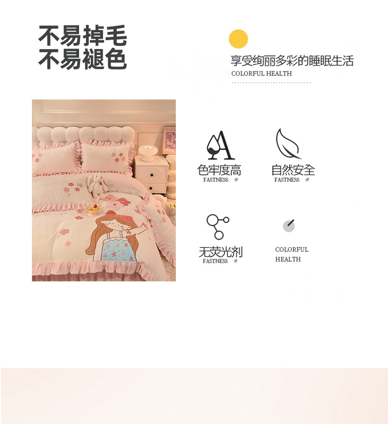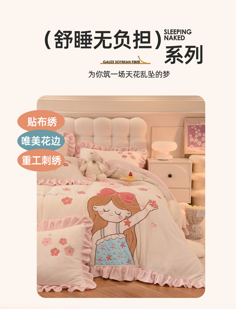 当前位置: 91家纺网 > 商品网购 > 床品套件 > 四件套 > 牛奶绒四件套 > 丝印良品 2023新款高档贴布绣甜心公主牛奶绒四件套 甜心公主-粉白