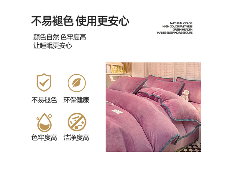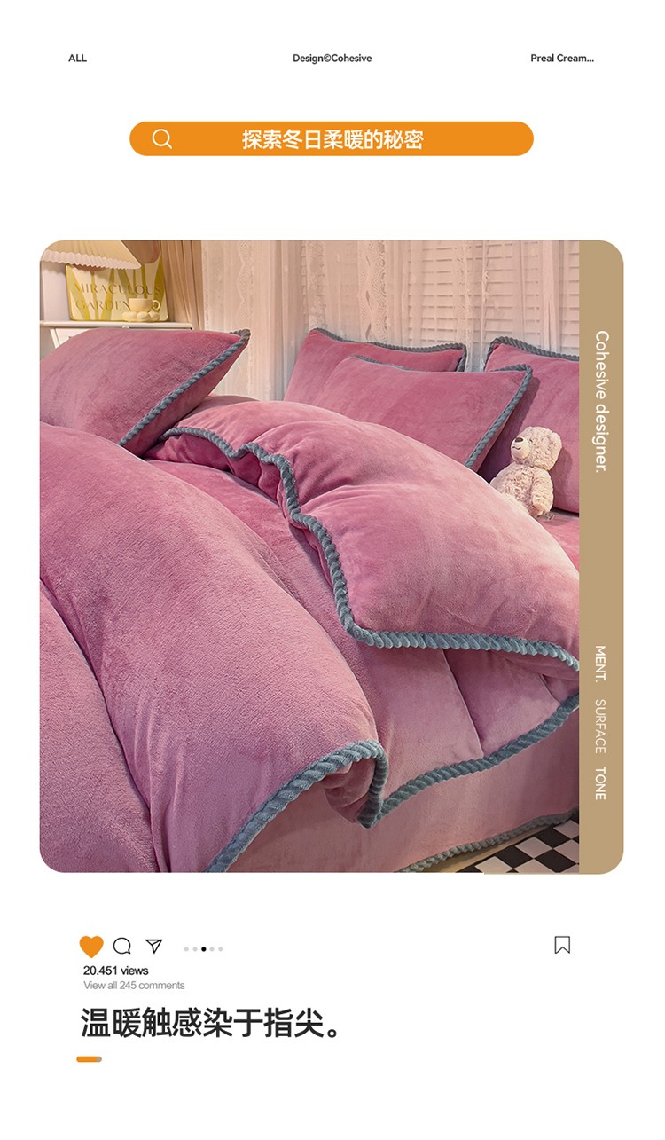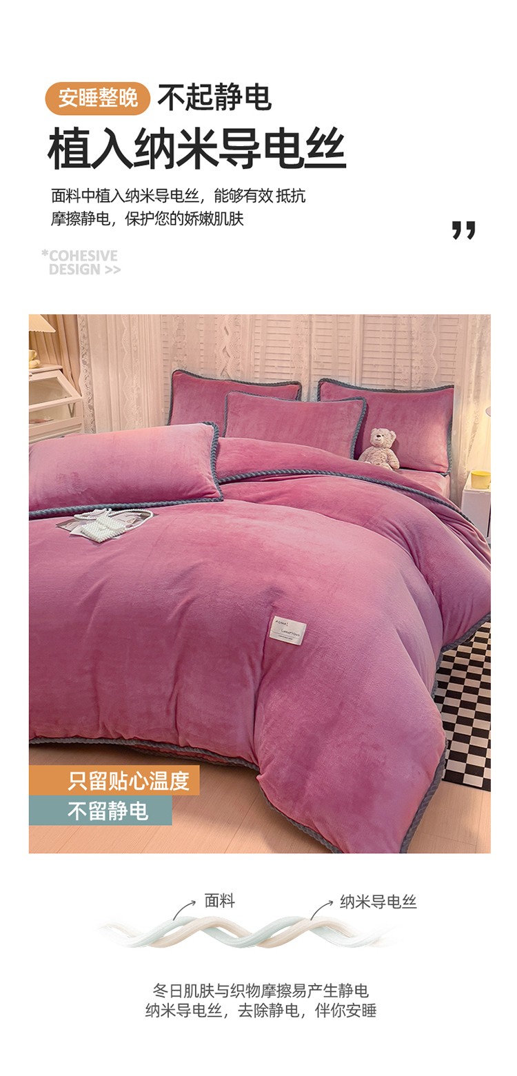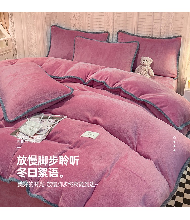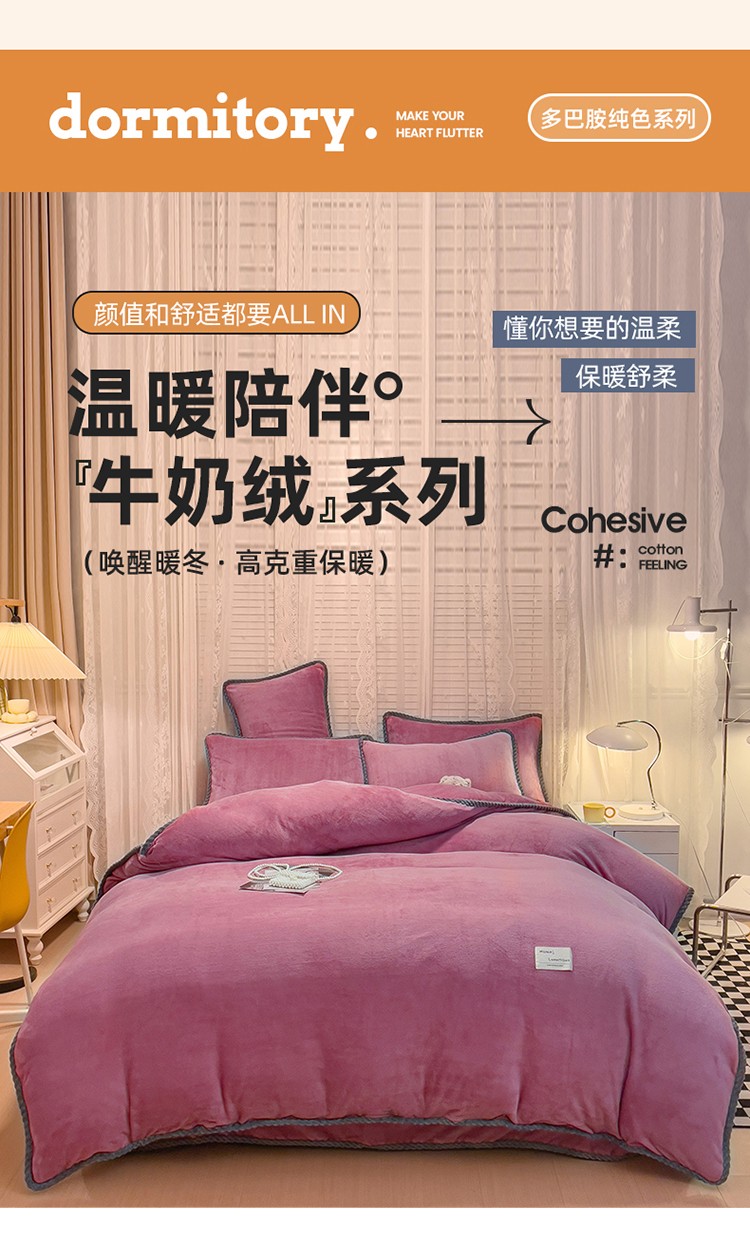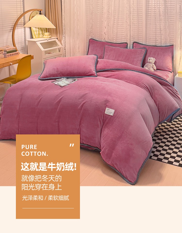 商品名称:欧冠 2023新款加厚牛奶绒纯色优雅四件套 优雅-豆沙