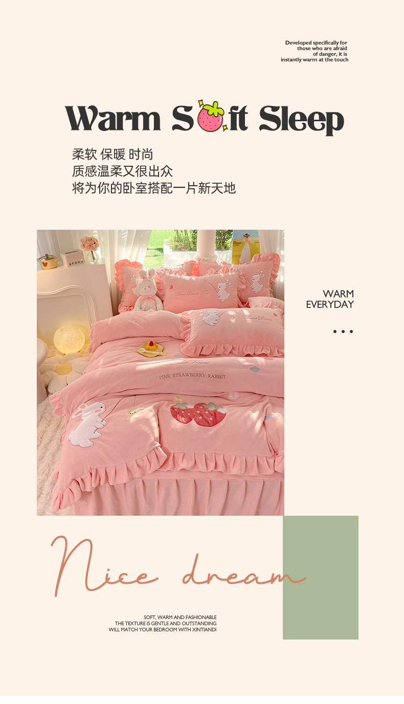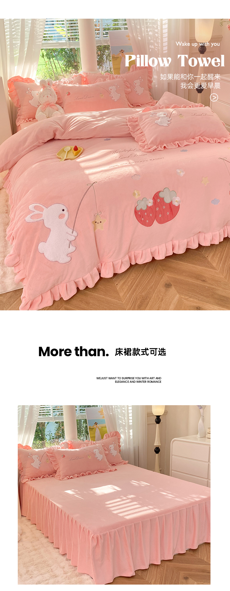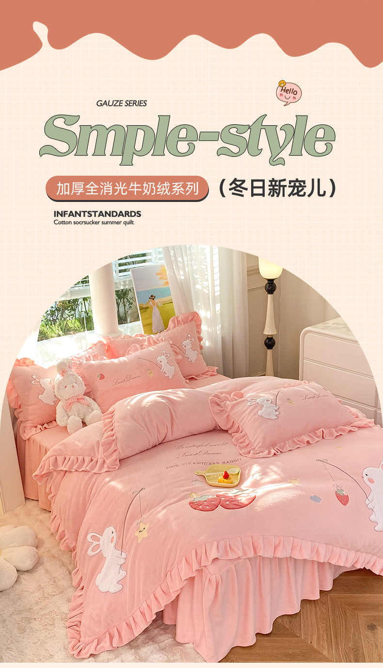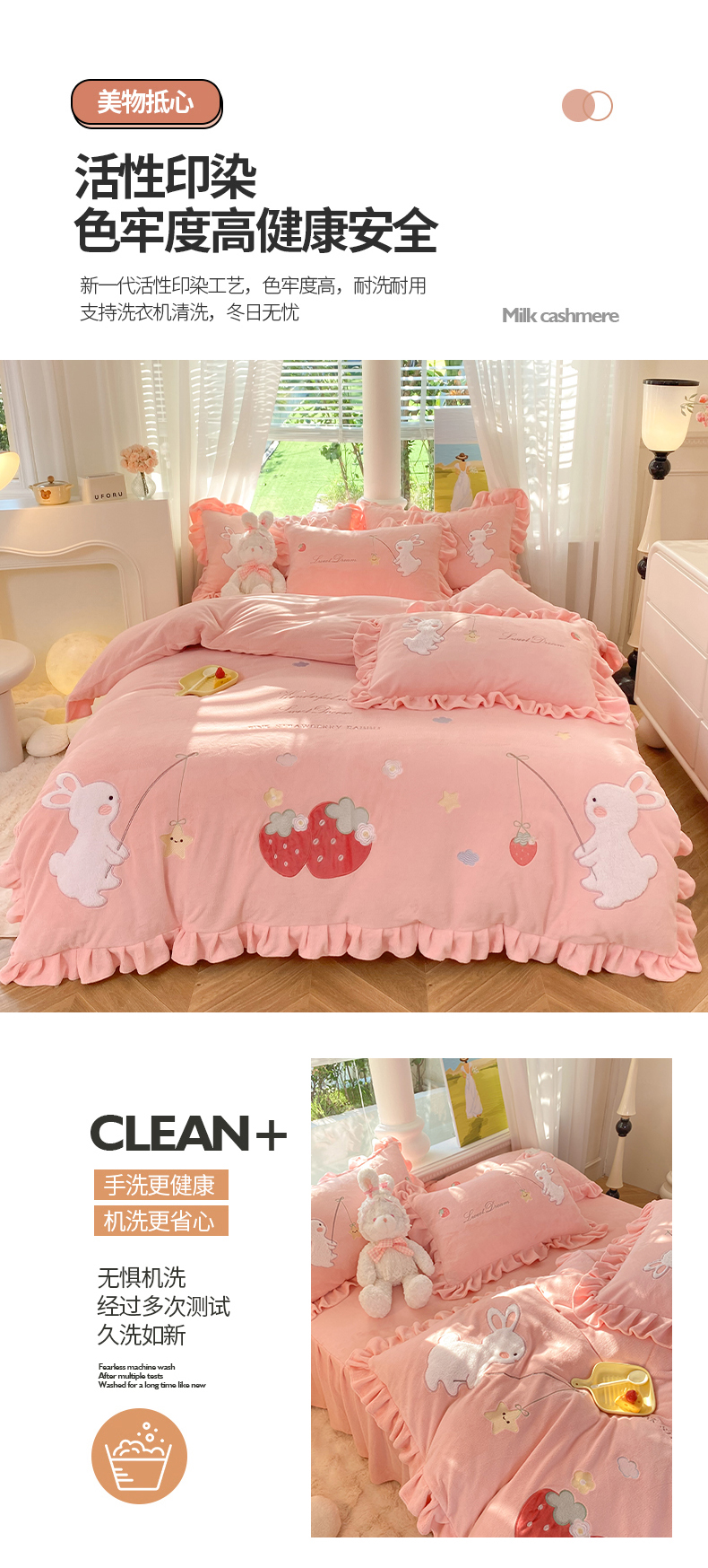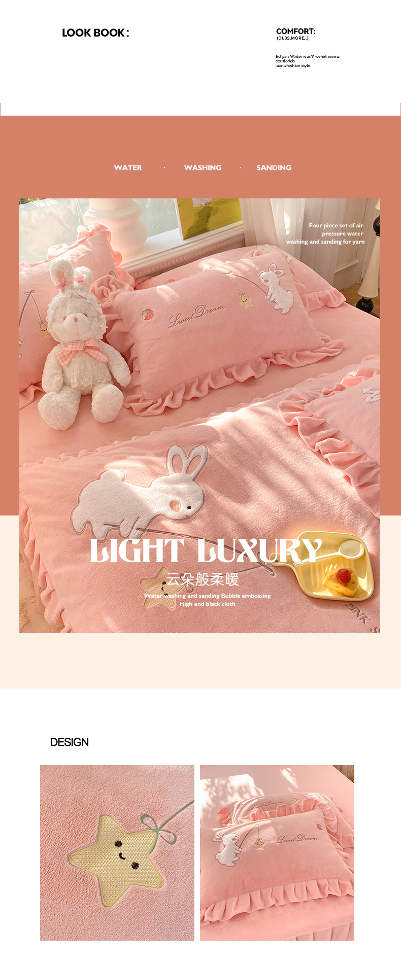 当前位置: 91家纺网 > 商品网购 > 床品套件 > 四件套 > 牛奶绒四件套 > 丝印良品 2023新款牛奶绒摘星兔贴布绣牛奶绒四件套 摘星兔-玉色