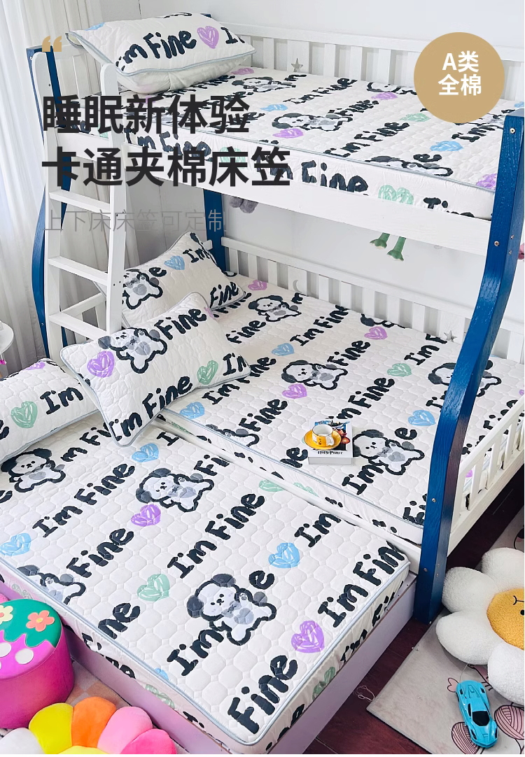 • 91家纺网 家纺一手货源 找家纺 小虾米 2023新款全棉卡通上下床夹棉系列床笠 调皮狗