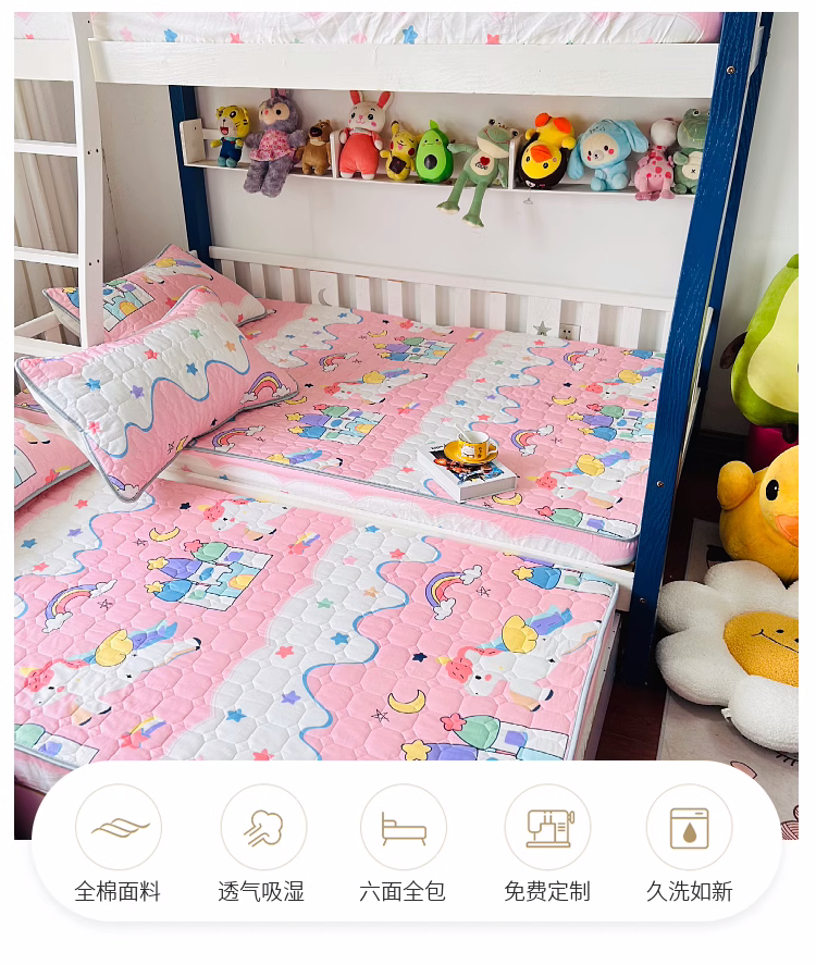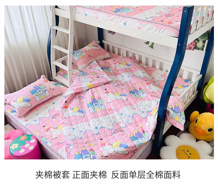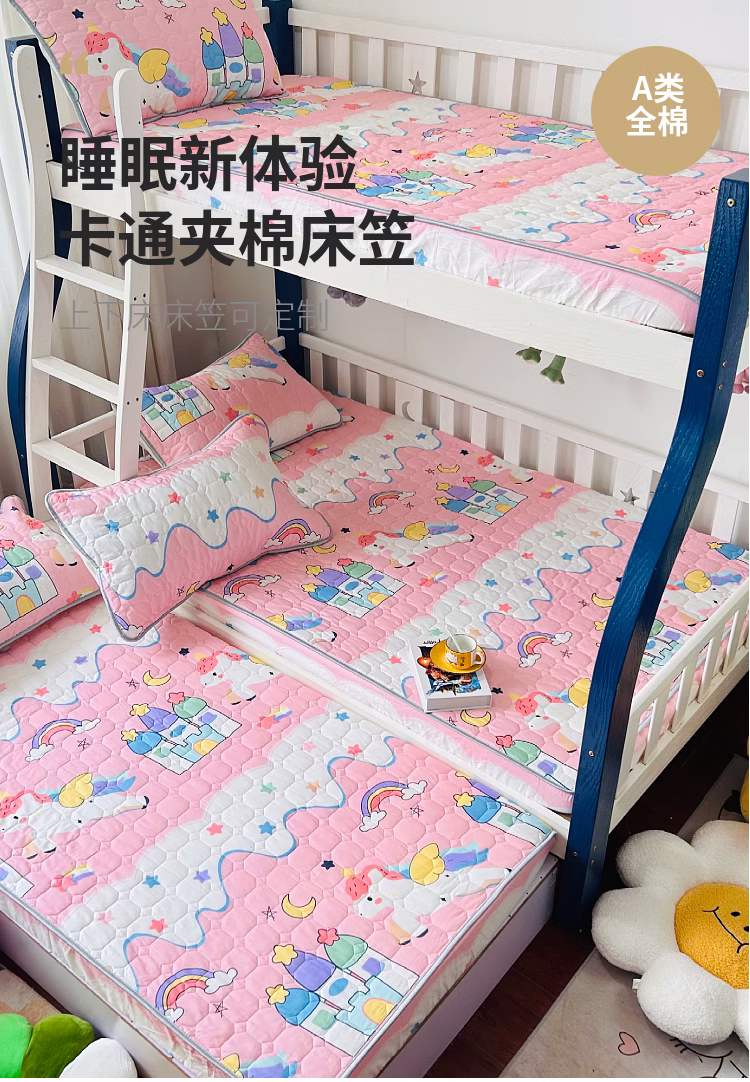 • 91家纺网 家纺一手货源 找家纺 小虾米 2023新款全棉卡通上下床夹棉系列床笠 甜甜的梦粉