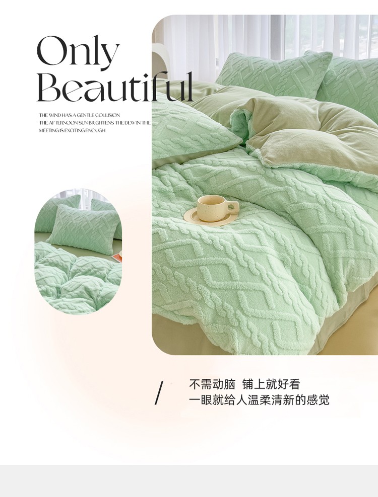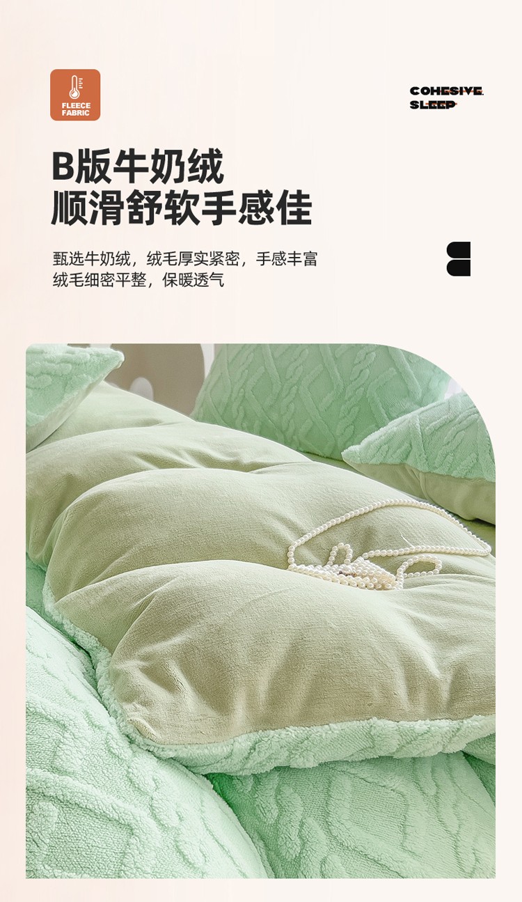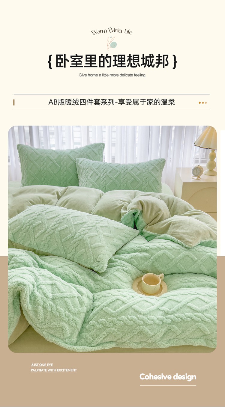 商品名称:欧冠 2023秋冬加厚塔芙绒简约款牛奶绒四件套 抹茶
