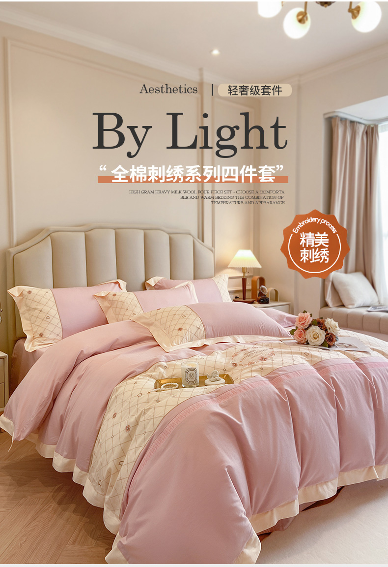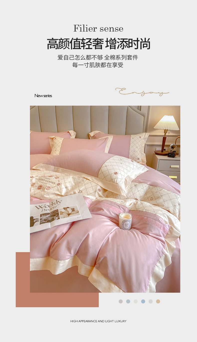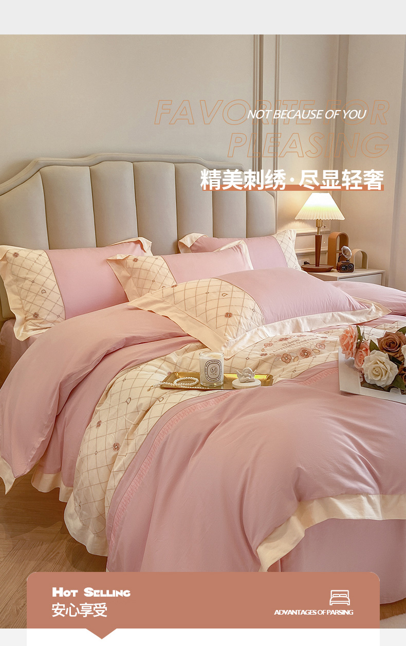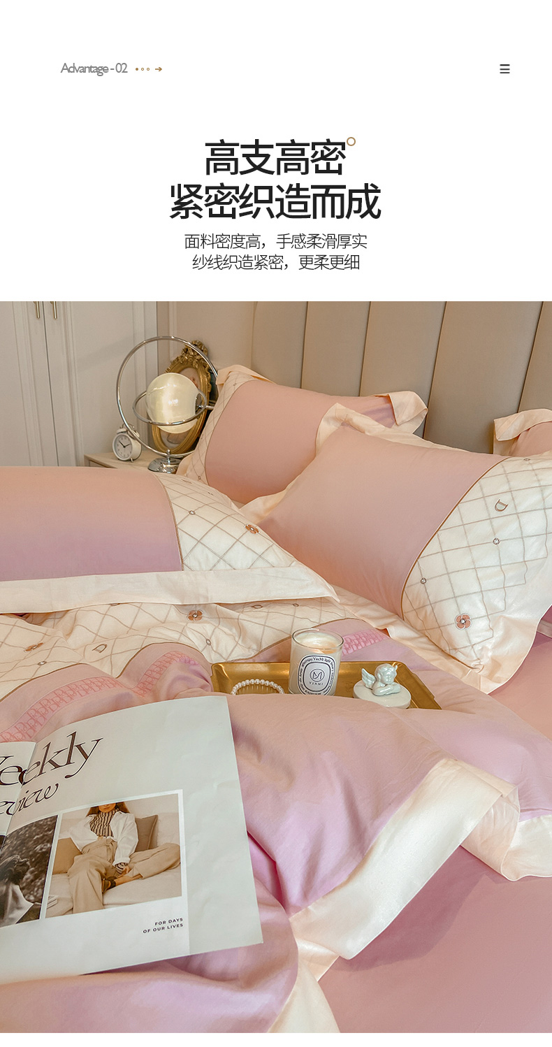 丝印良品 2023秋冬保暖60S全棉刺绣拼接菲曼系列四件套 菲曼-香芋紫