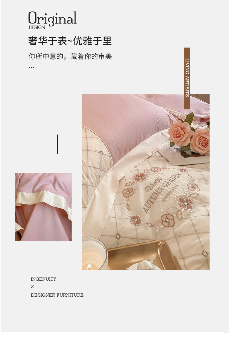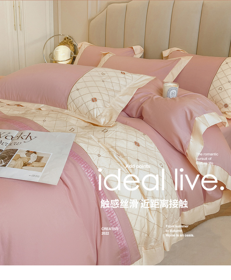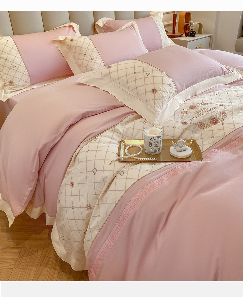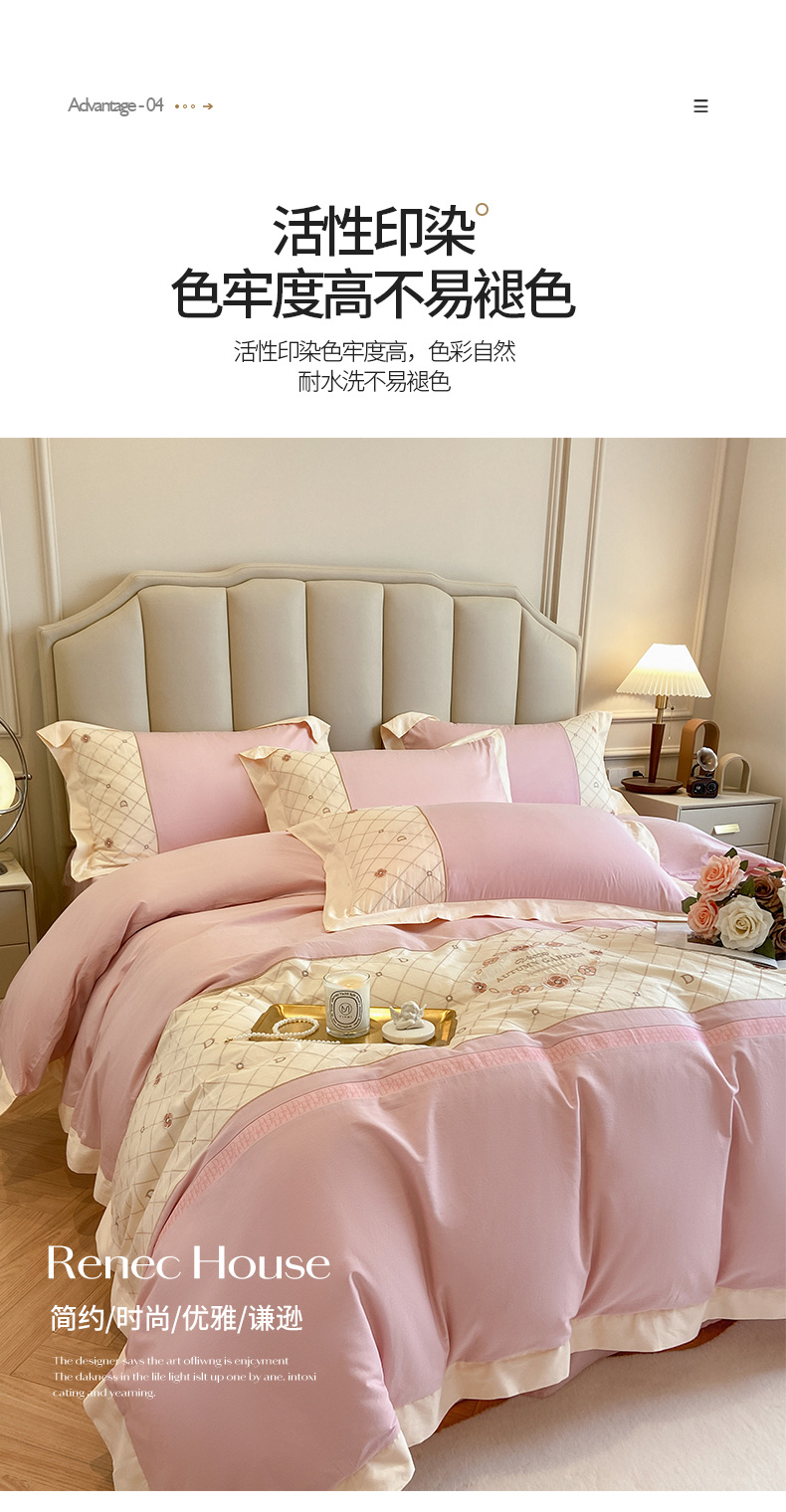 丝印良品 2023秋冬保暖60S全棉刺绣拼接菲曼系列四件套 菲曼-香芋紫
