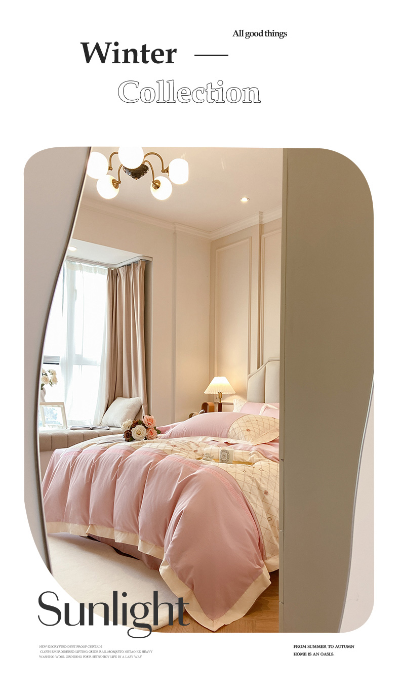 丝印良品 2024直播秋冬高克重500克床裙款泡泡四件套纯色印花泡泡-甜心粉,泡泡-甜心粉