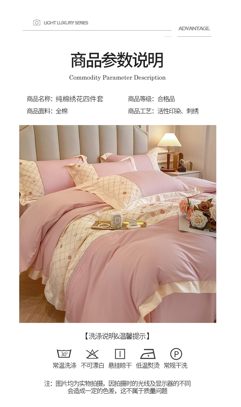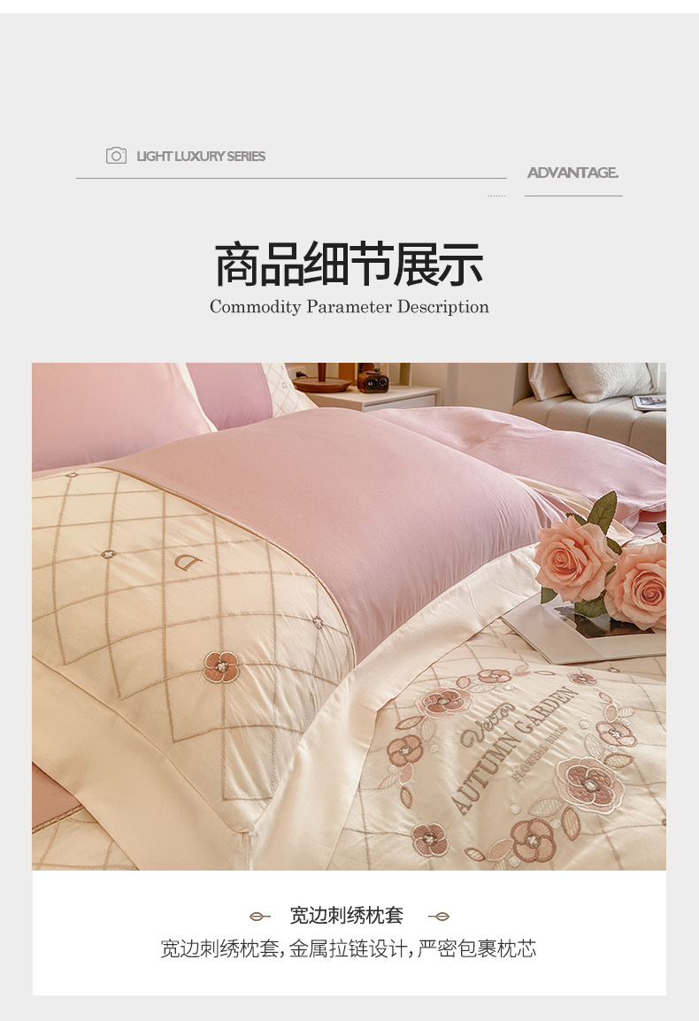 商品名称:丝印良品 2023秋冬保暖60S全棉刺绣拼接菲曼系列四件套 菲曼-香芋紫