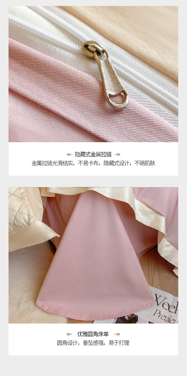 丝印良品 2024直播秋冬高克重500克床裙款泡泡四件套纯色印花泡泡-粉白,泡泡-粉白