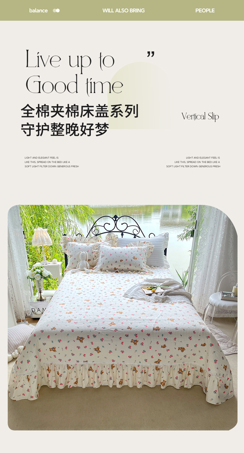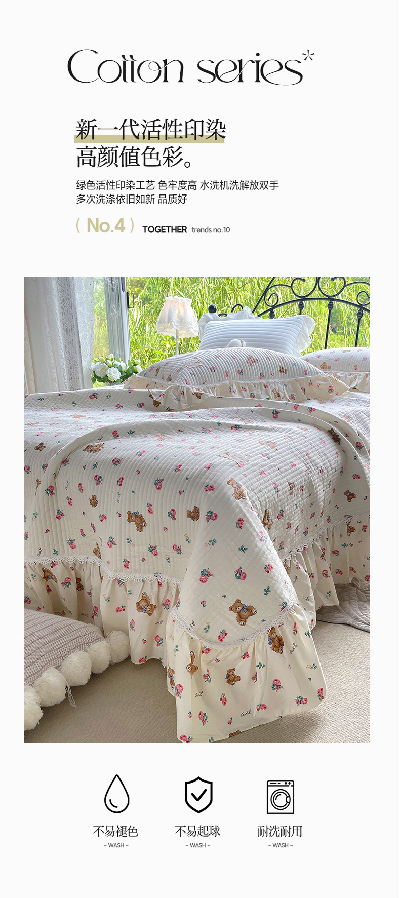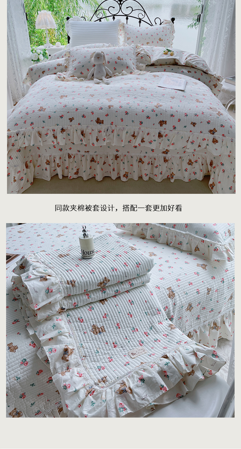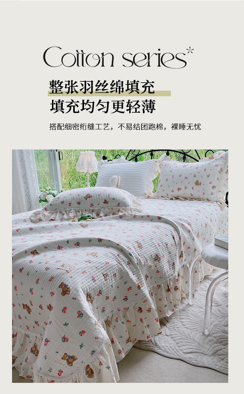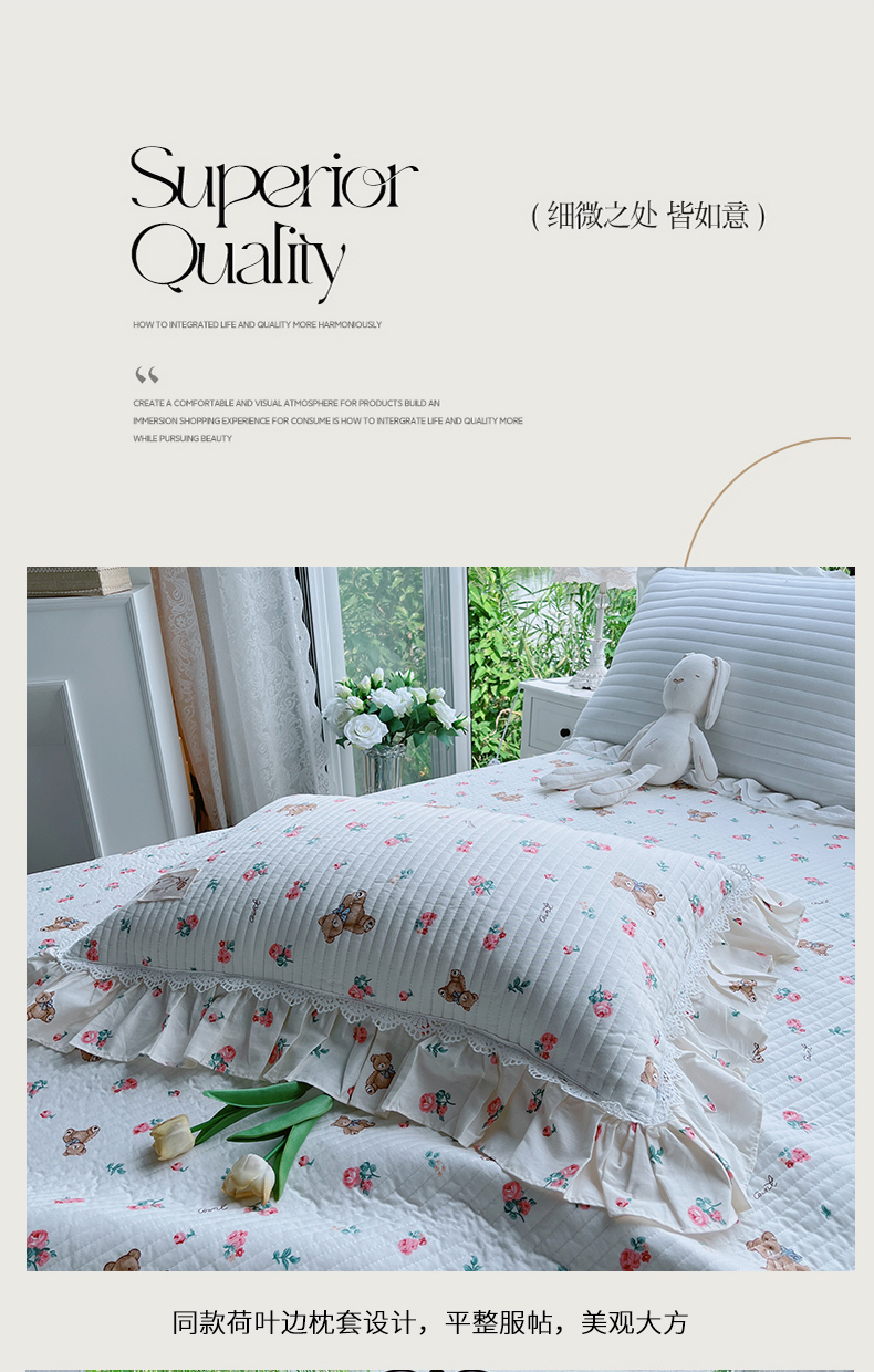 商品名称:胜权2023秋冬新款全棉花边夹棉单床盖单件四季用床盖三件套 甜心