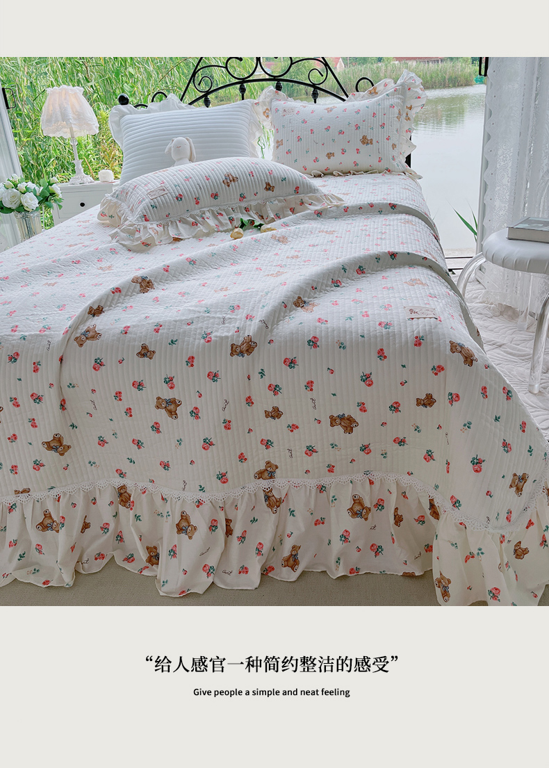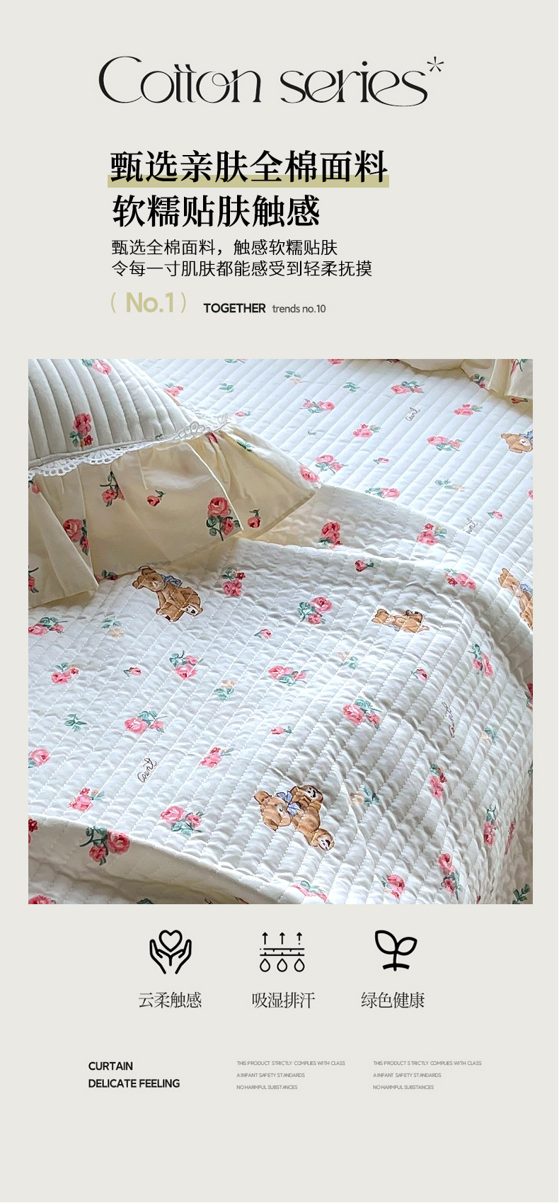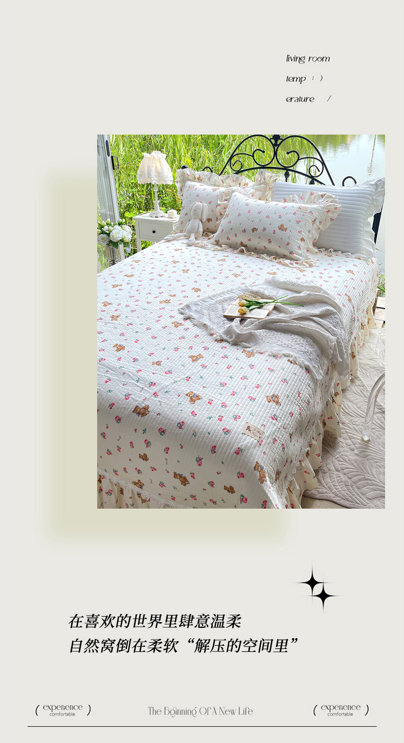 胜权2023秋冬新款全棉花边夹棉单床盖单件四季用床盖三件套 甜心