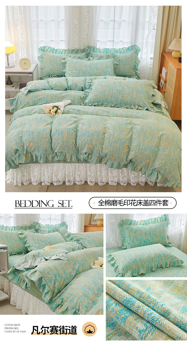 (总)宜凡家纺 2023新款全棉加厚磨毛印花床盖四件套