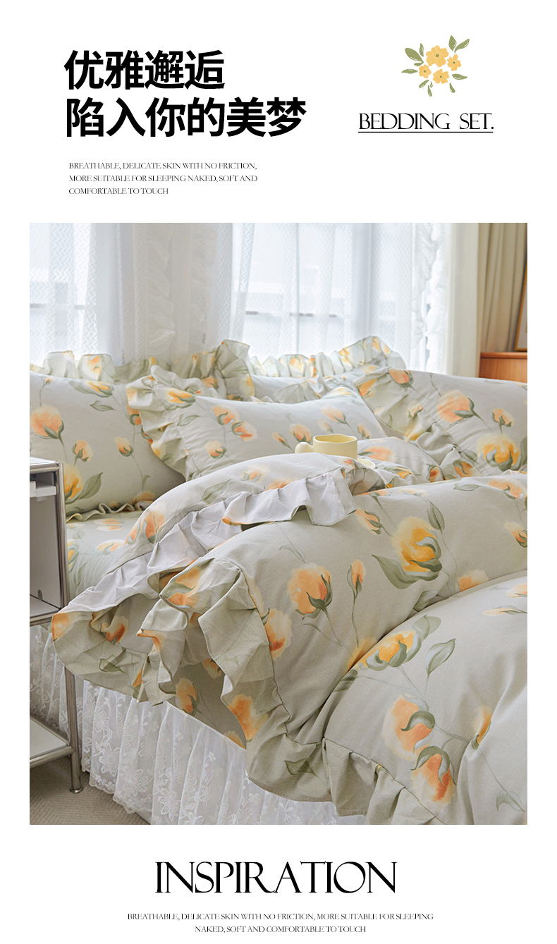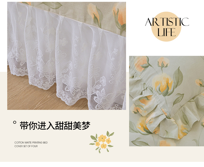 (总)宜凡家纺 2025新款全棉数码印花床裙四件套系列一,静若幽兰,浮云织梦,梦幻花园,陌上花开