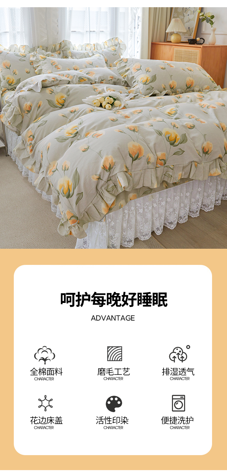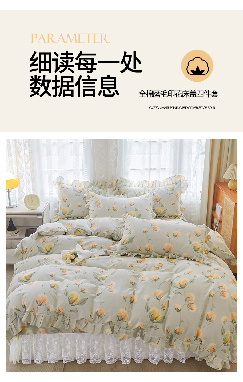 商品名称:(总)宜凡家纺 2023新款全棉加厚磨毛印花床盖四件套