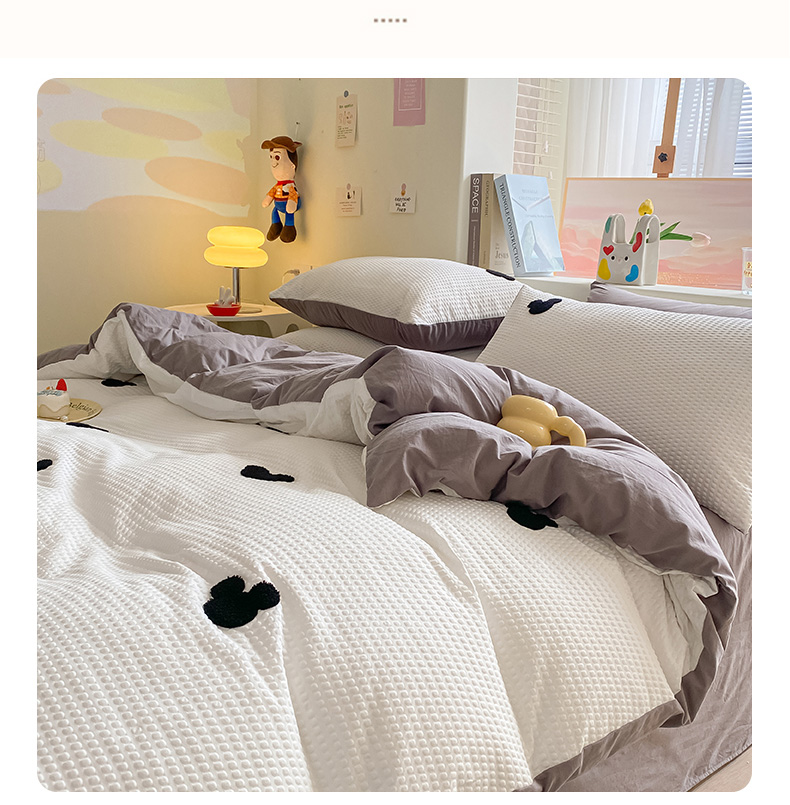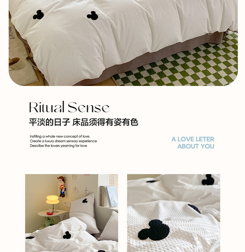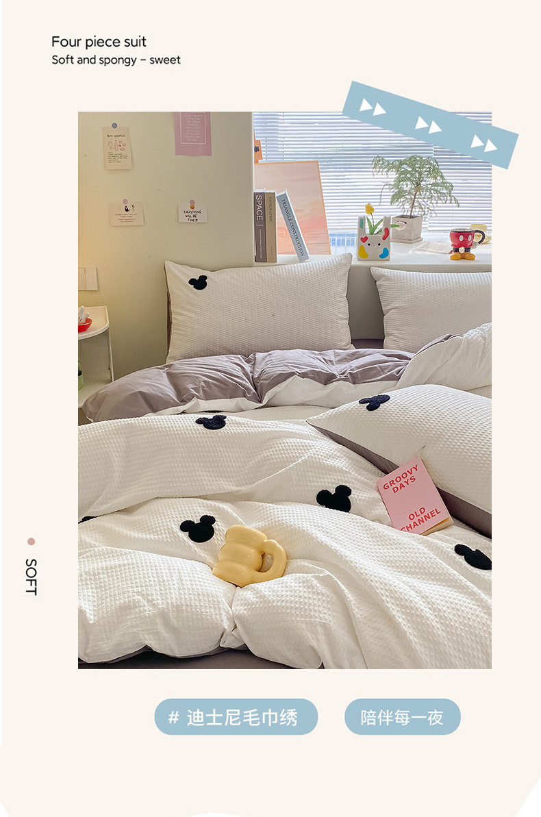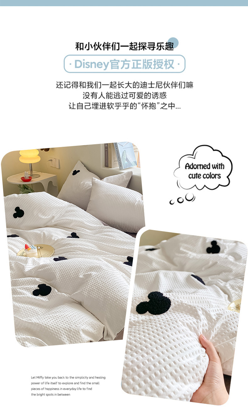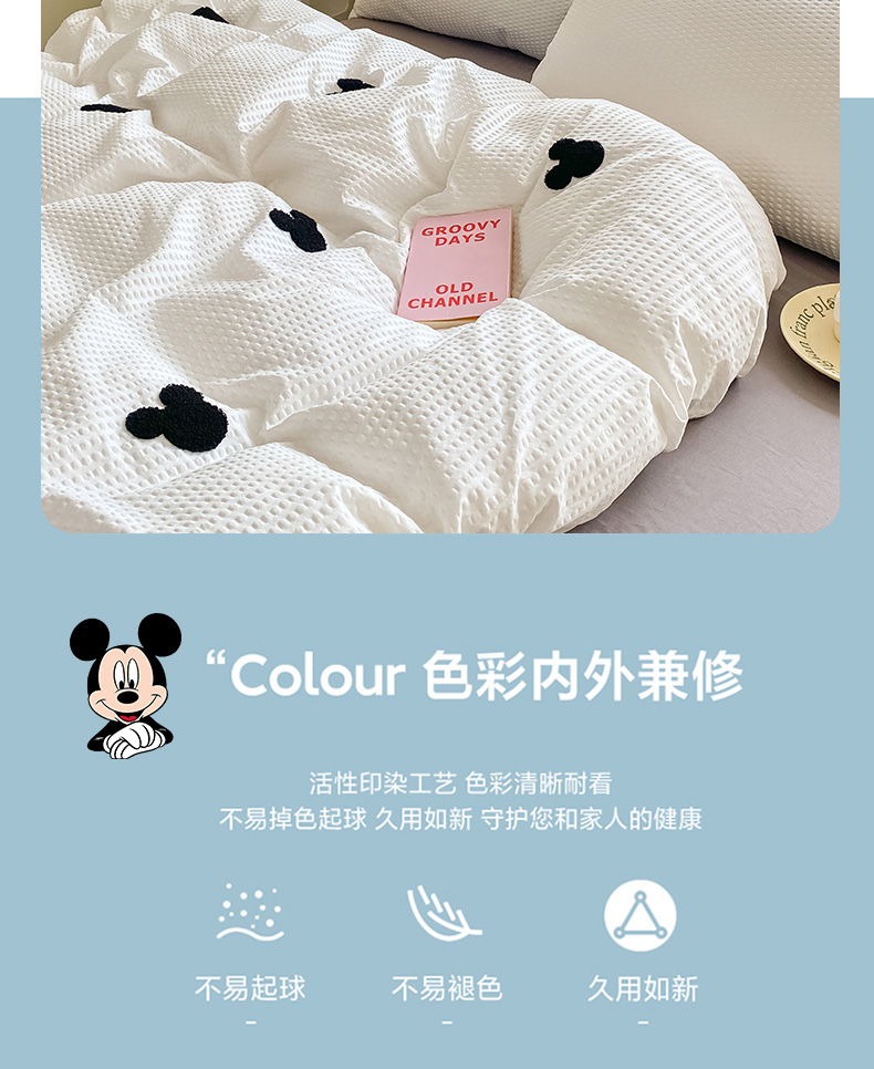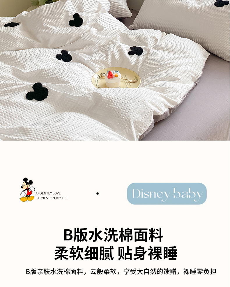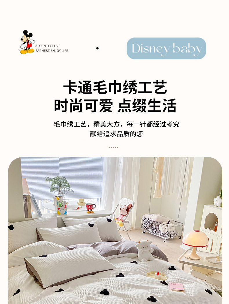 当前位置: 91家纺网 > 商品网购 > 床品套件 > 四件套 > 水洗棉四件套 > 眠帛家居 2024新款华夫格迪士尼米奇毛巾绣系列 米奇浅灰
