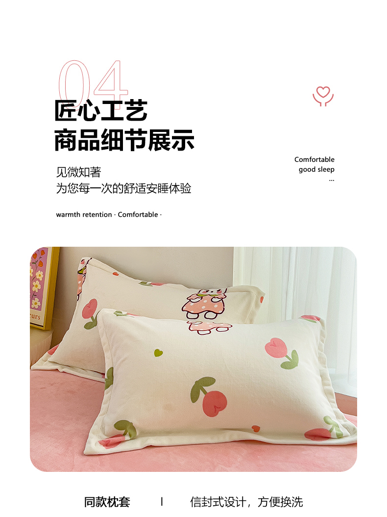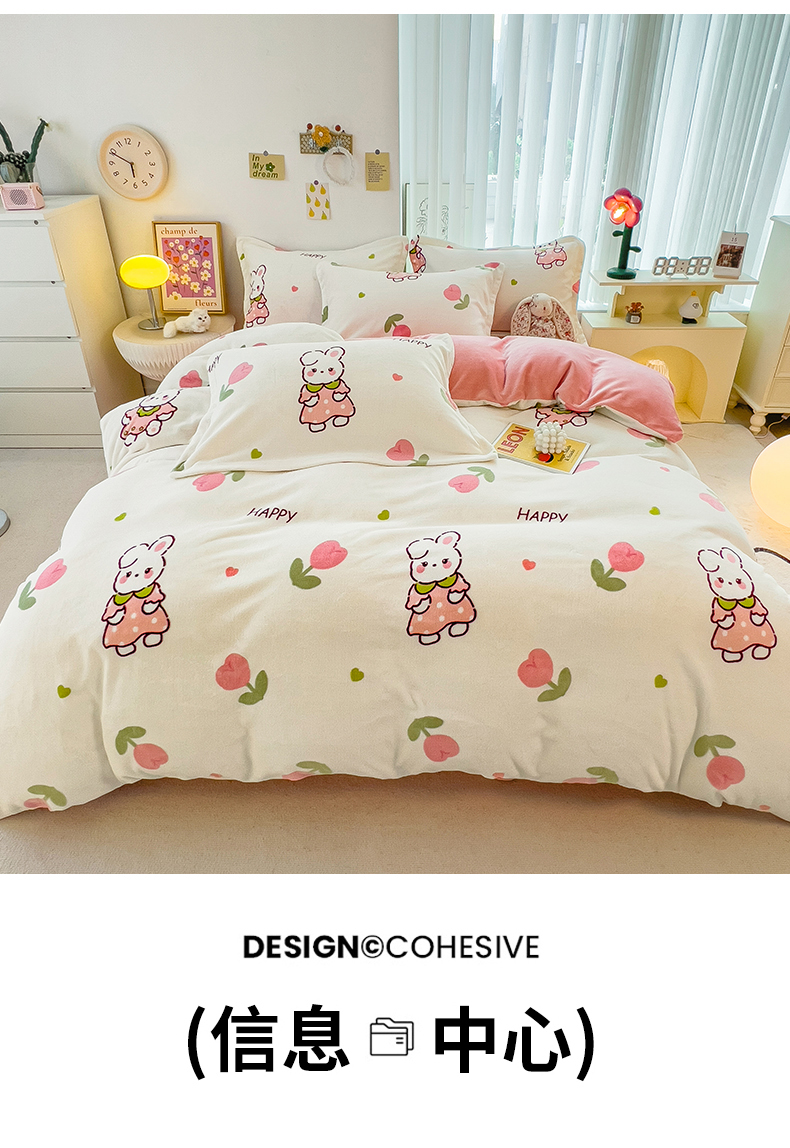 全季家居2023新款小清新A类高克重加厚印花牛奶绒四件套 花园兔