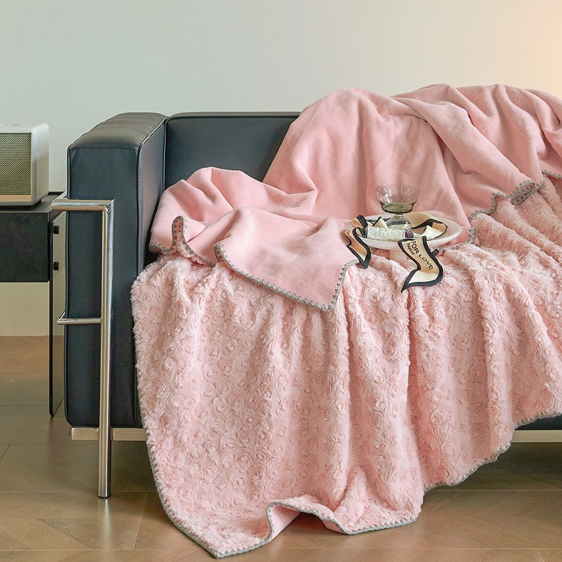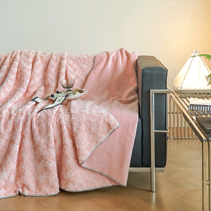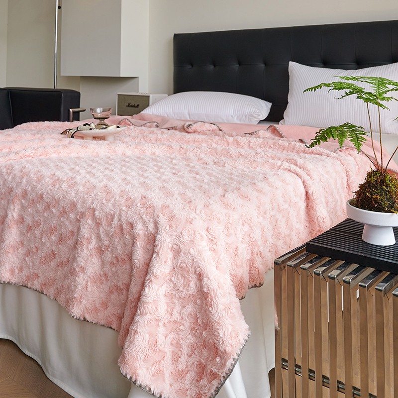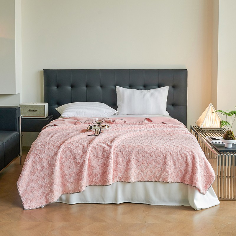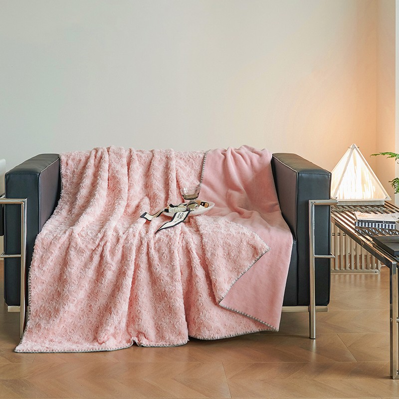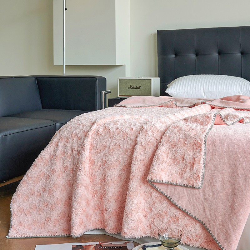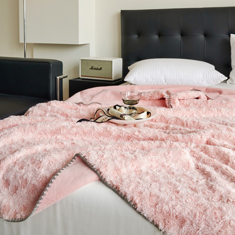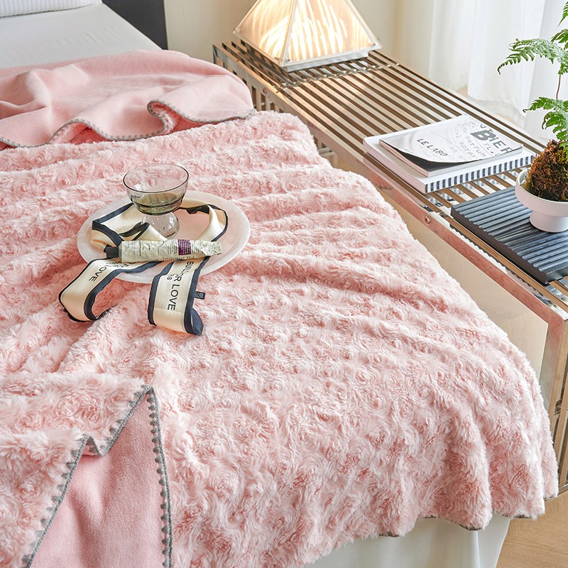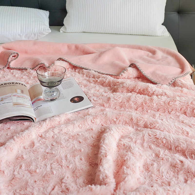 商品名称:寐居家纺 2023新款兔兔绒玫瑰多功能毛毯 兔绒玫瑰-嫩粉