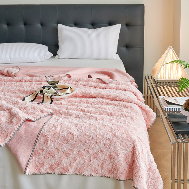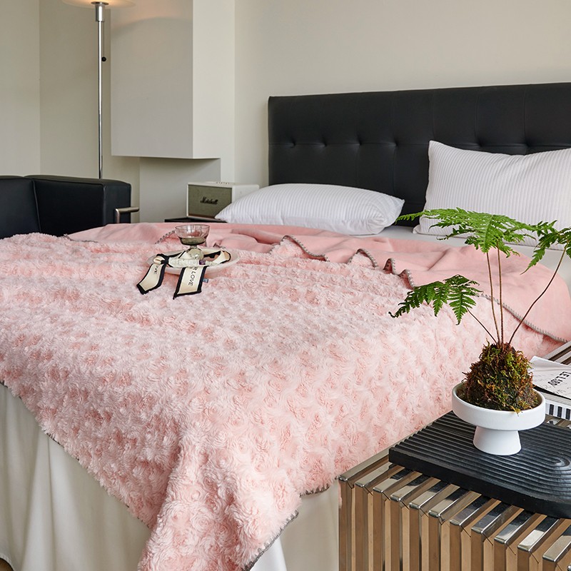 寐居家纺 2023新款兔兔绒玫瑰多功能毛毯 兔绒玫瑰-嫩粉