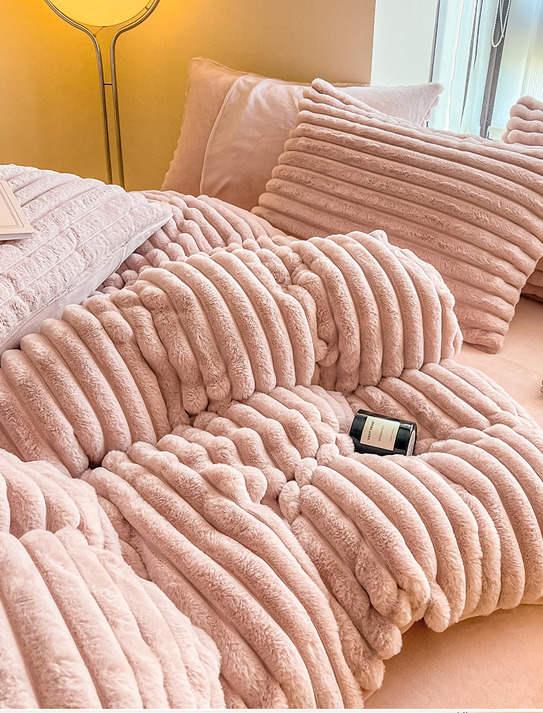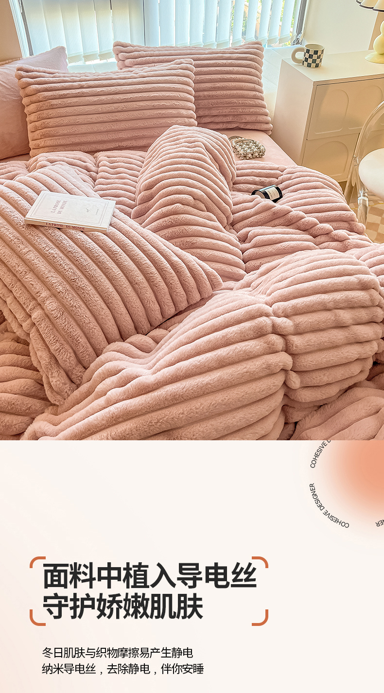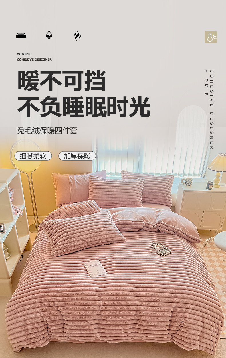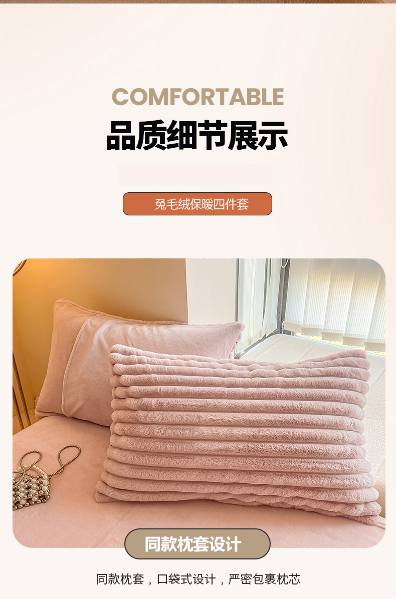 当前位置: 91家纺网 > 商品网购 > 床品套件 > 四件套 > 兔毛绒四件套 > 慕尚家纺 2025新款抽条兔毛四件套 安雅-豆沙