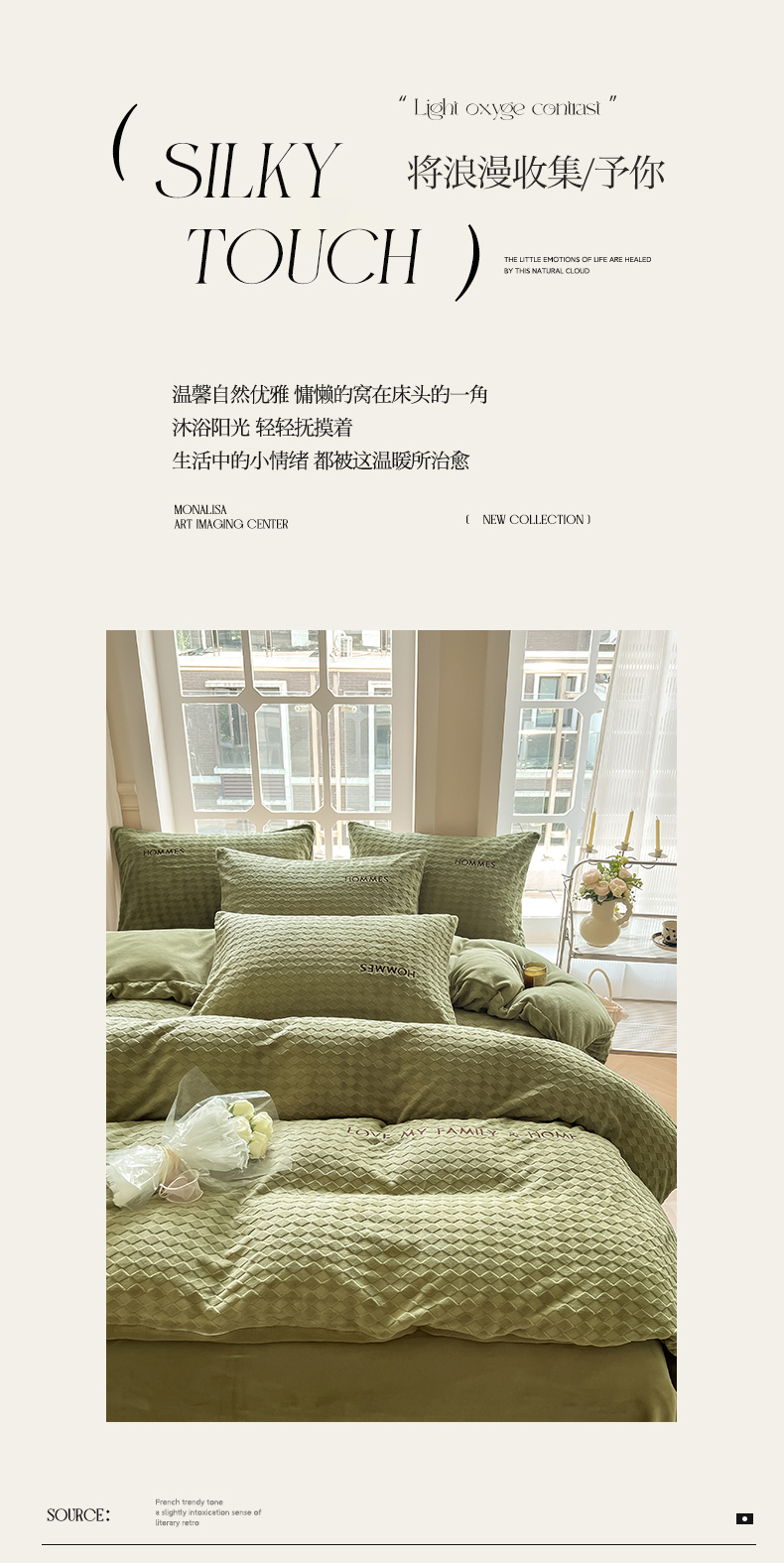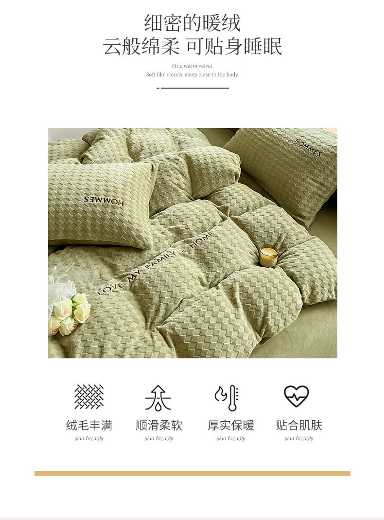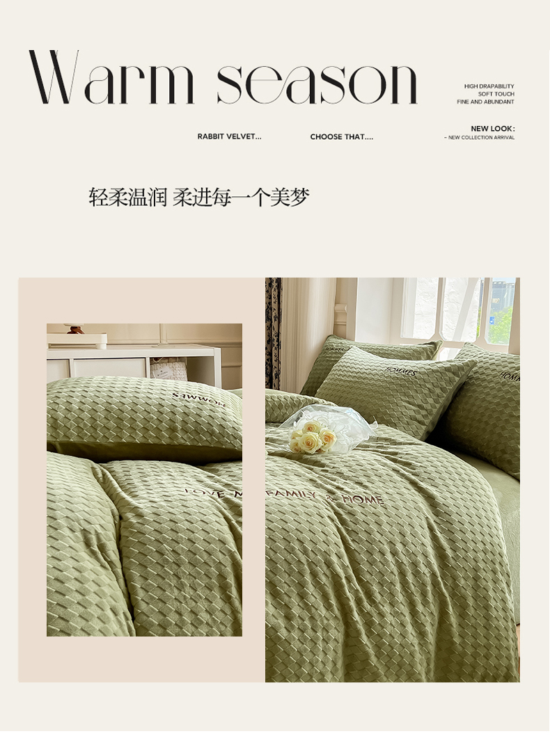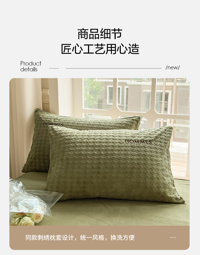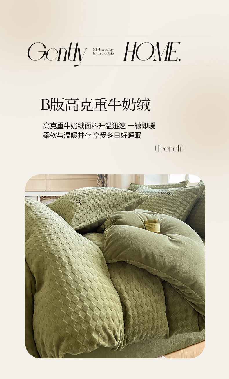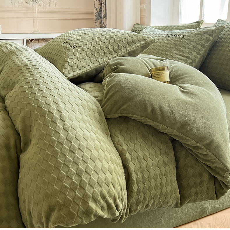 当前位置: 91家纺网 > 商品网购 > 床品套件 > 四件套 > 雕花绒四件套 > 慕尚家纺 2025高克重雕花绒刺绣工艺四件套 拉夫-绿