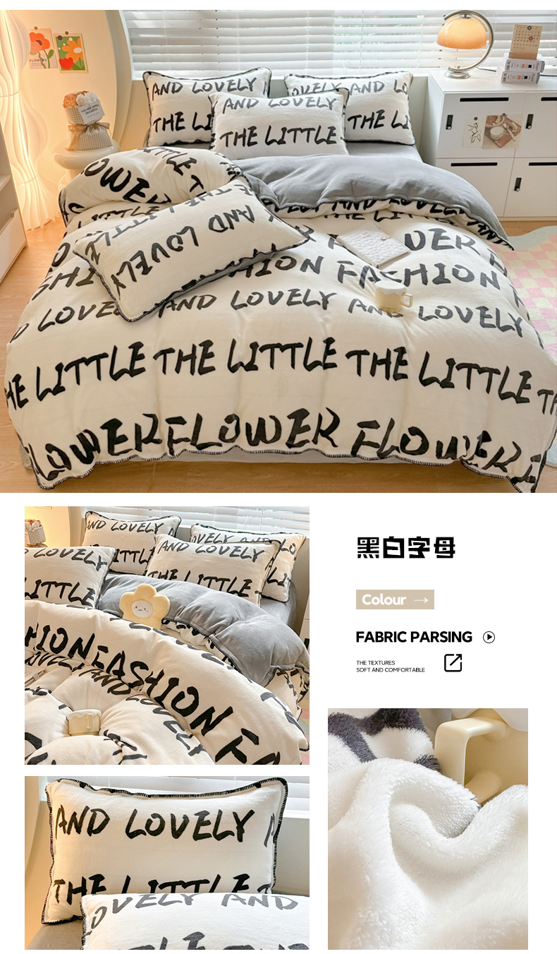 当前位置: 91家纺网 > 商品网购 > 床品套件 > 四件套 > 牛奶绒四件套 > 安哆啦 2024新款高克重牛奶绒混搭四件套 黑白字母