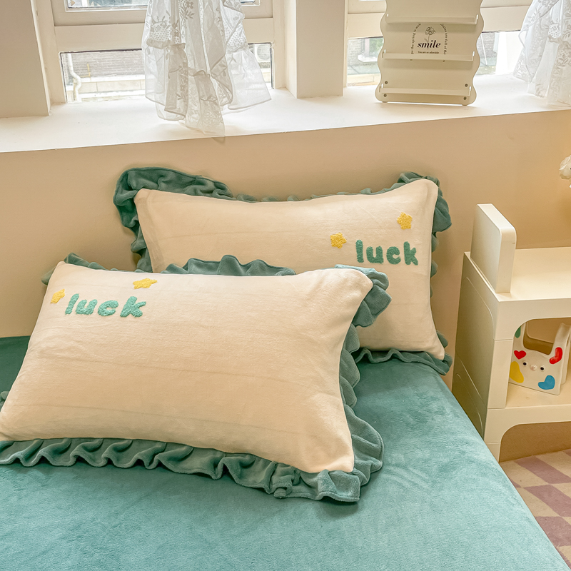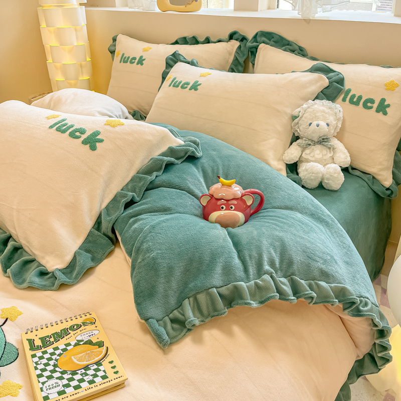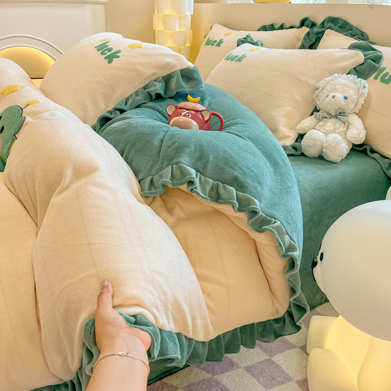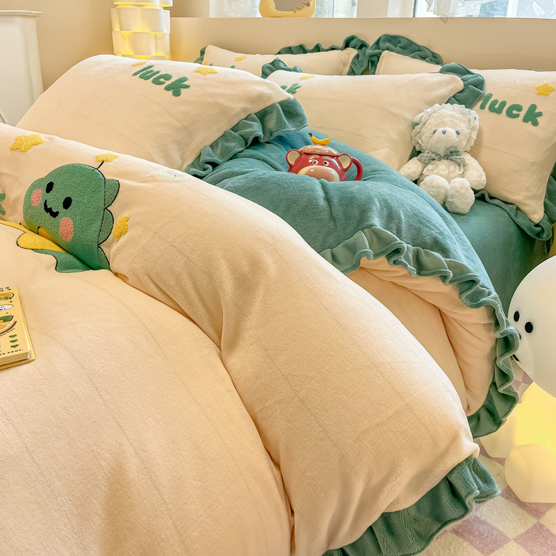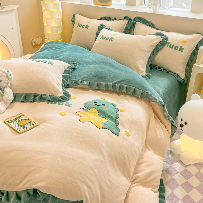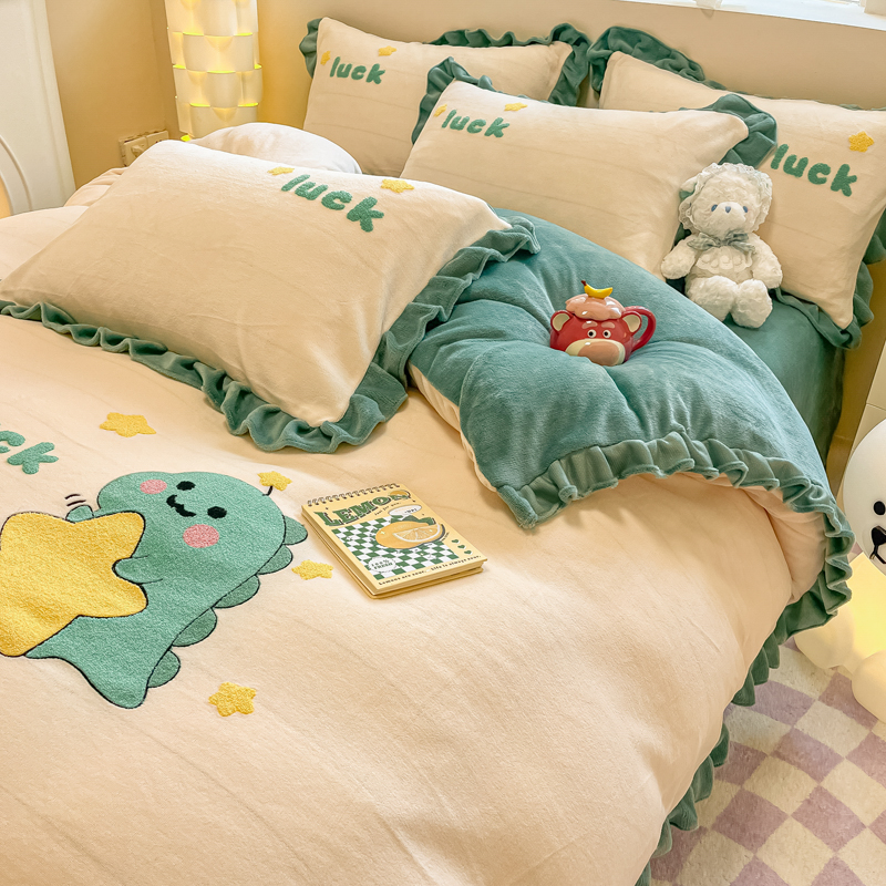 沐辰 2023新款韩版绣花加厚牛奶绒四套件 星星恐龙