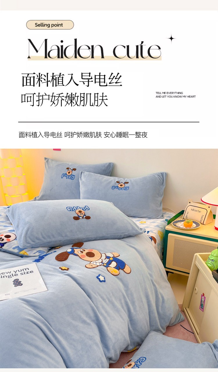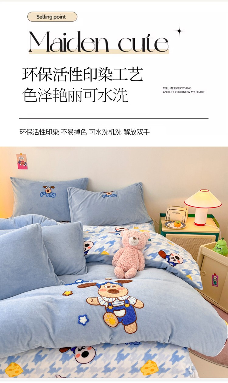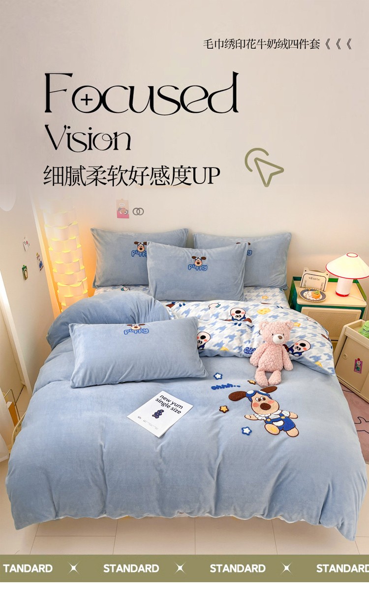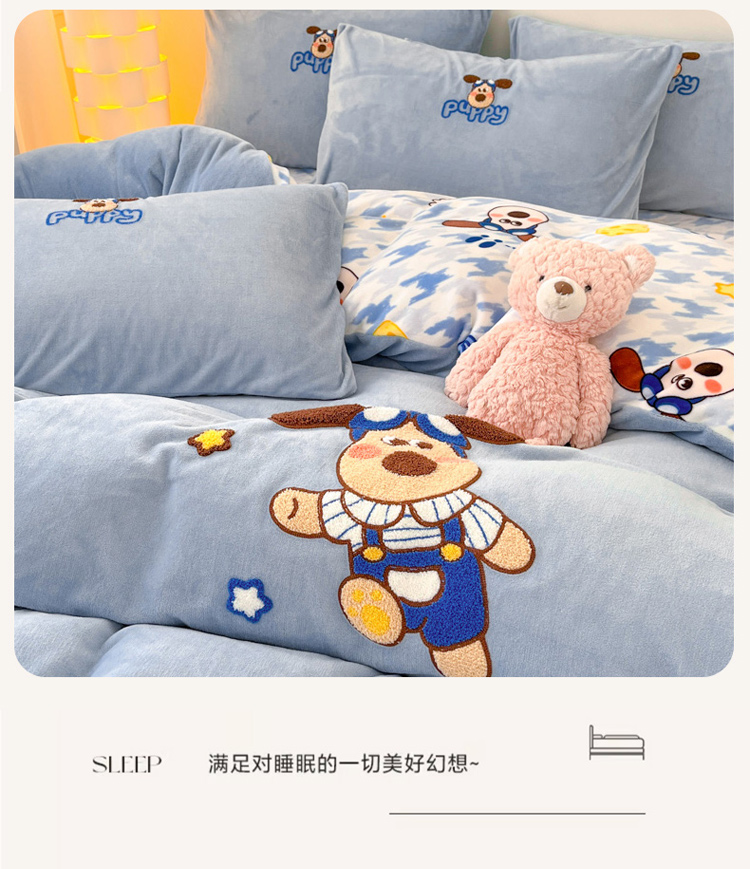 当前位置: 91家纺网 > 商品网购 > 床品套件 > 四件套 > 牛奶绒四件套 > 2023新款牛奶绒印花毛巾绣单被套 被套150*200cm 毛巾绣 毛巾绣-嗨皮小狗