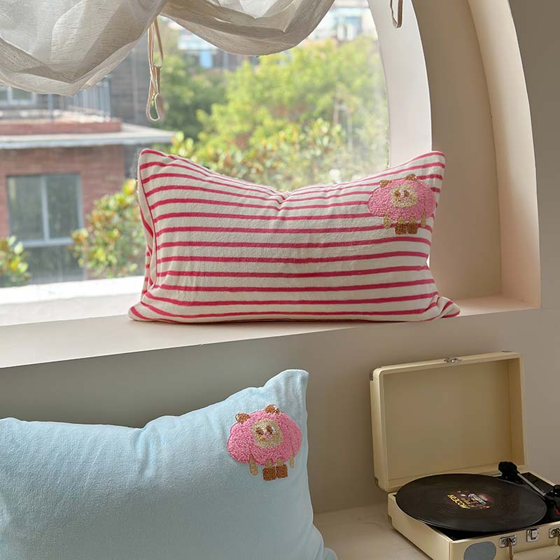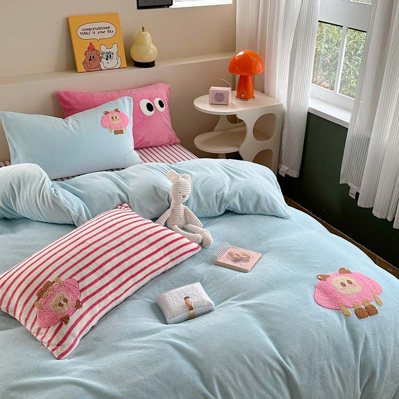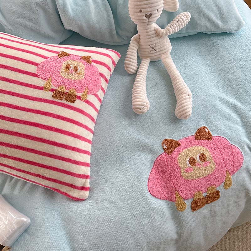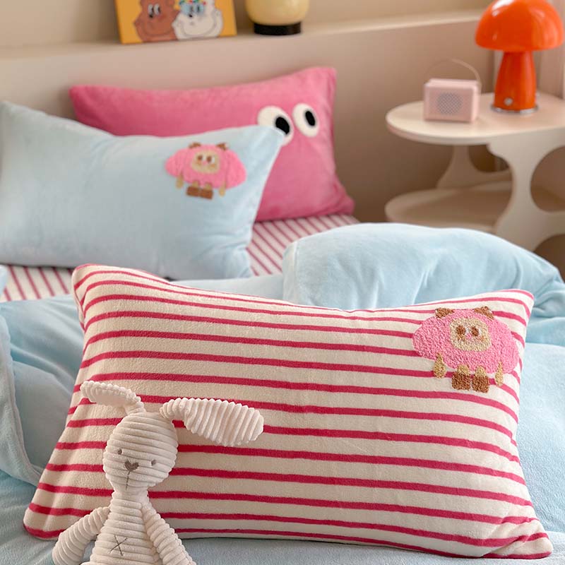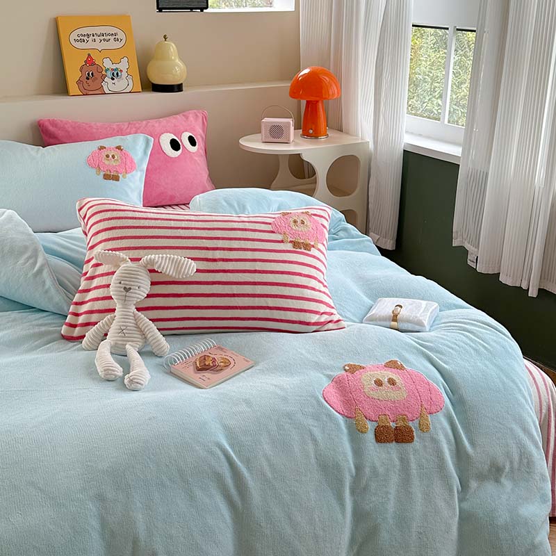 柚子 2023新款高克重牛奶绒多巴胺条纹毛巾绣四件套 可爱多