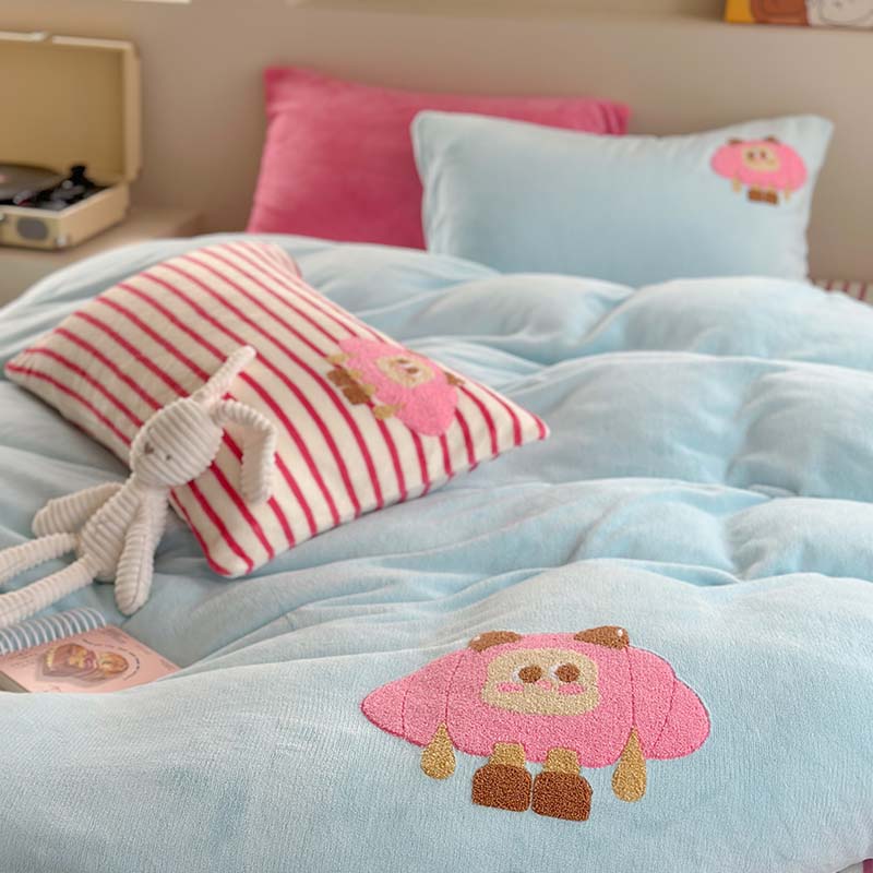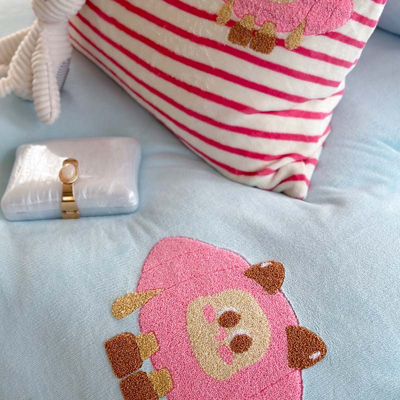 (总)柚子YOUTH 2025新款双面泰迪绒毛巾绣四件套,甜甜圈,快乐企鹅,森林聚会,甜酷KT,小茄子,雪人王国