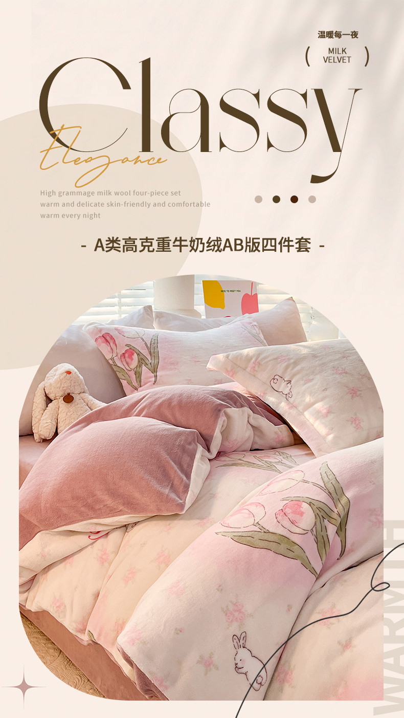 当前位置: 91家纺网 > 商品网购 > 床品套件 > 四件套 > 牛奶绒四件套 > 妖妖家纺 2023新款牛奶绒四件套 郁金花开
