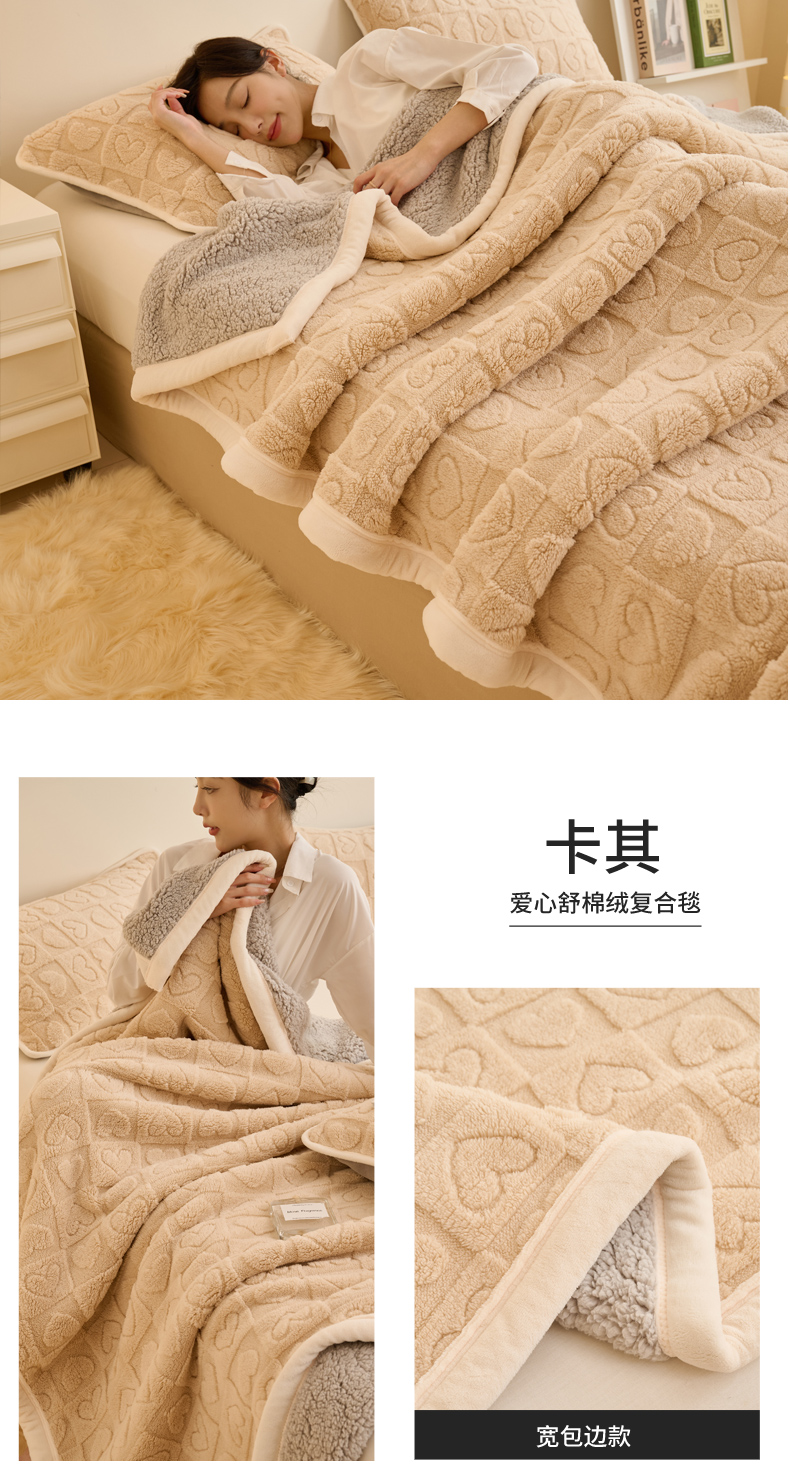 当前位置: 91家纺网 > 商品网购 > 毛毯休闲毯绒毯 > 毛毯 > 21度C 2023新款爱心舒棉绒复合毯盖毯毛毯 爱心包边款-卡其