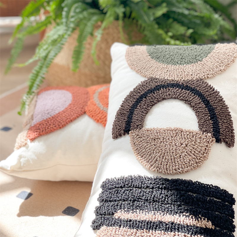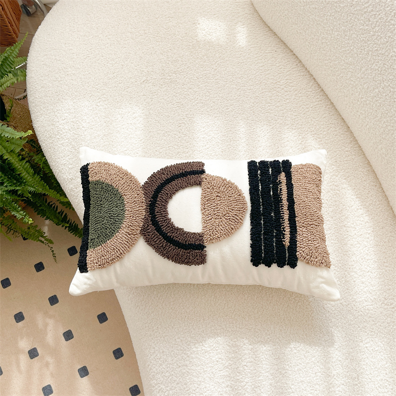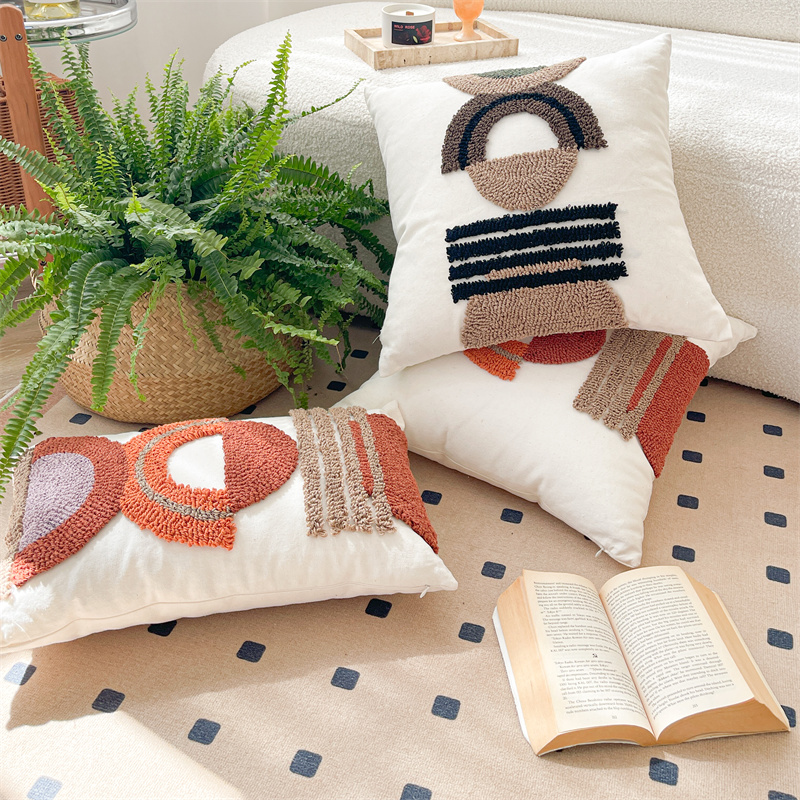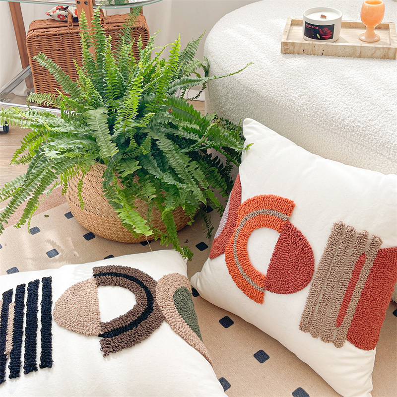 (总)918拾朵家居 2023新款简约风圈绒刺绣抱枕,灰咖(方),灰咖(长),洋橘(方),洋橘(长)