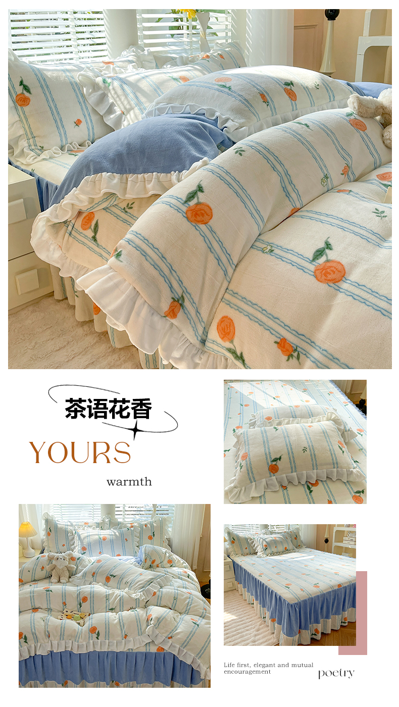 商品名称:(总)金盛皇朝家纺 2023高克重牛奶绒韩版花边床裙款四件套