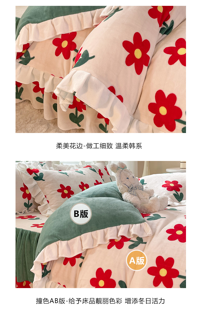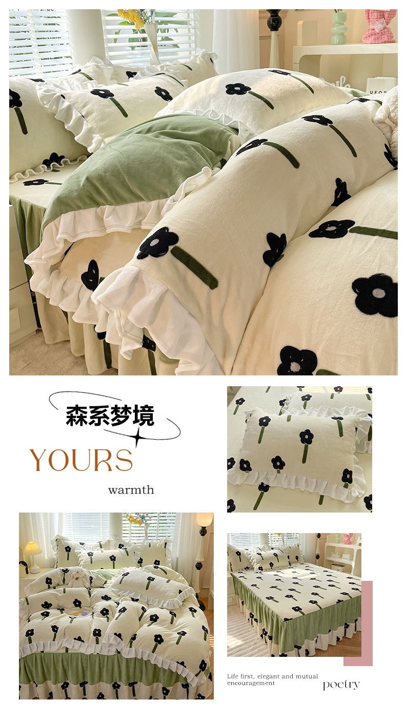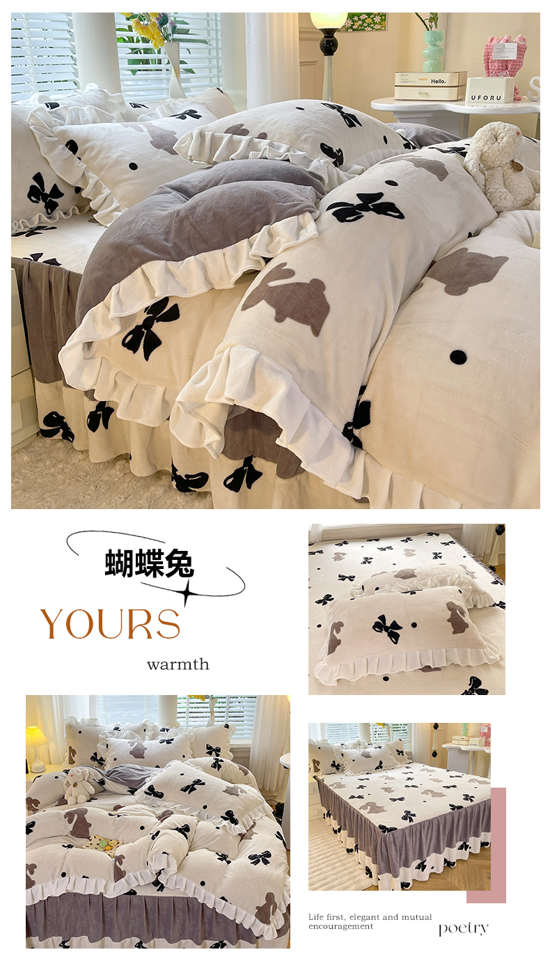 (总)金盛皇朝家纺 2024新款双层花边牛奶绒夹棉床盖四件套,繁花米兔,花影如梦,萌宝熊猫,甜甜宝贝,兔兔吉祥,心心相印,悠悠米咖,紫韵格调