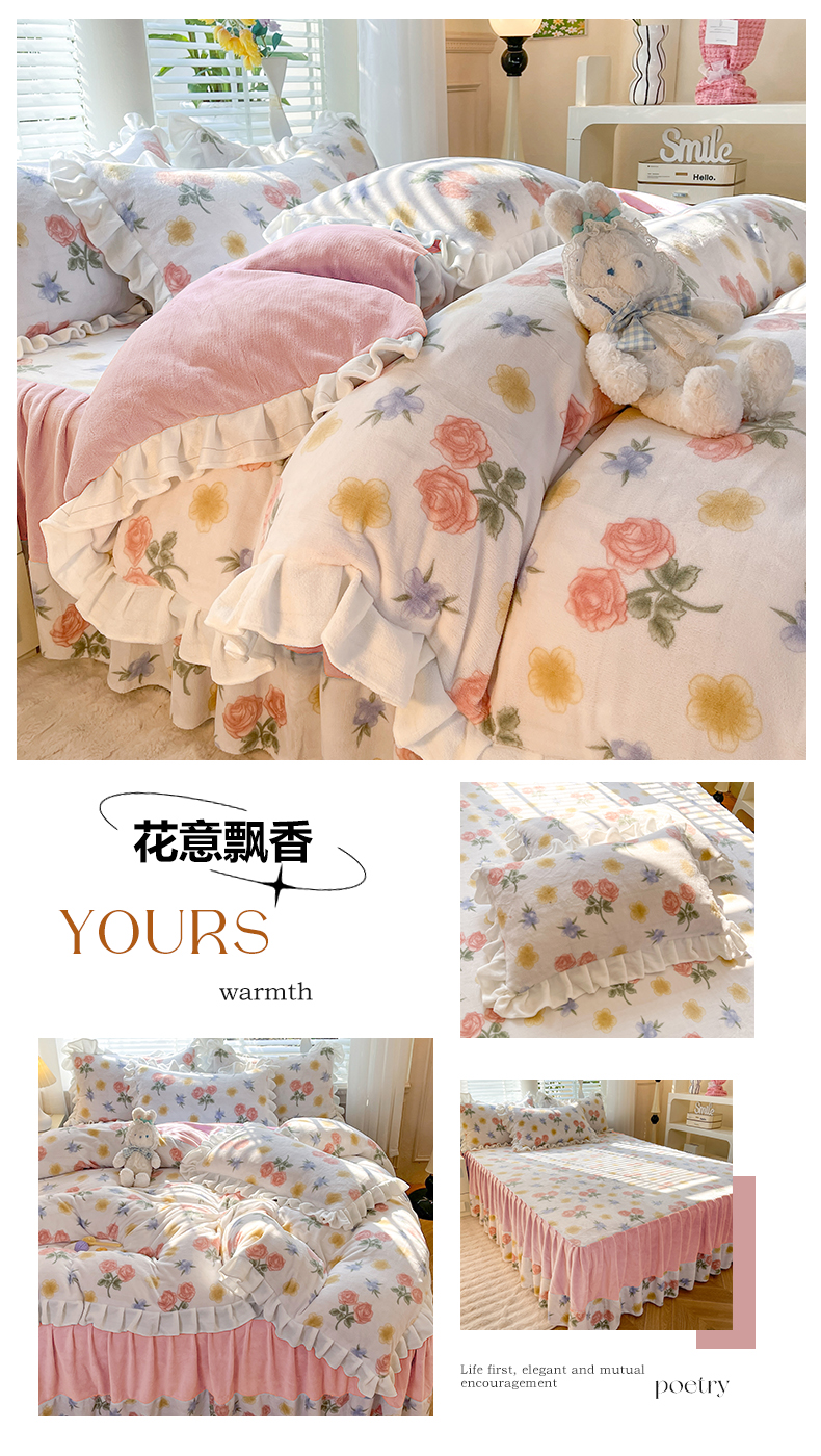 (总)金盛皇朝家纺 2023高克重牛奶绒韩版花边床裙款四件套