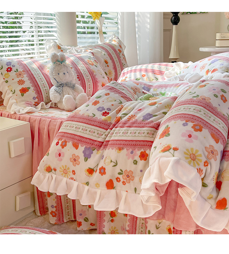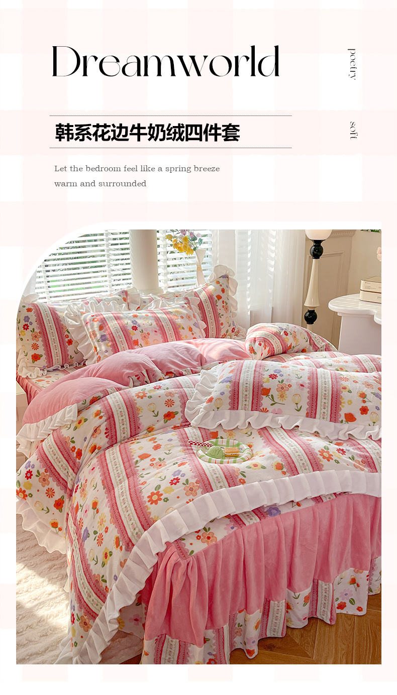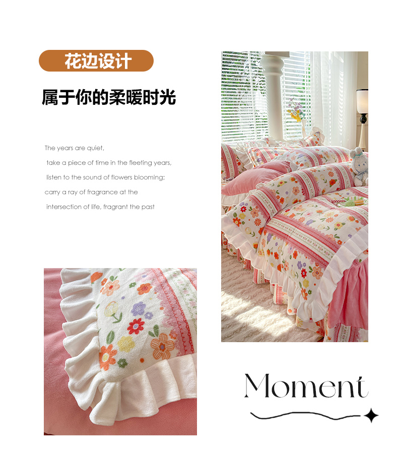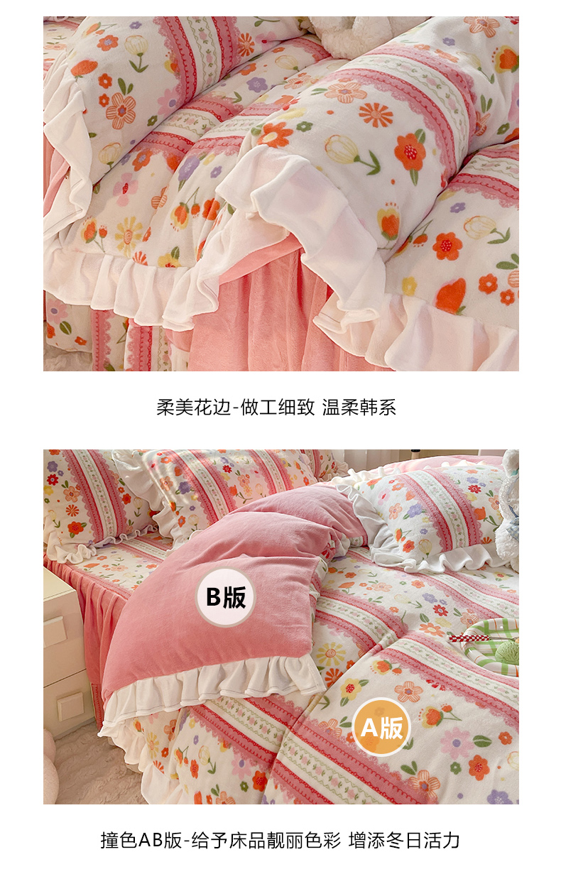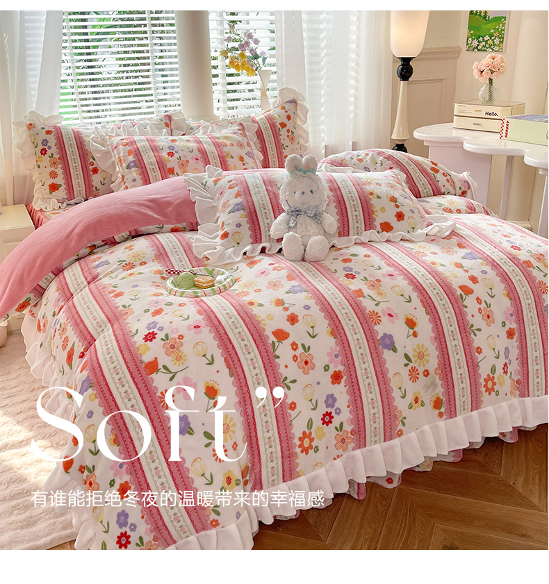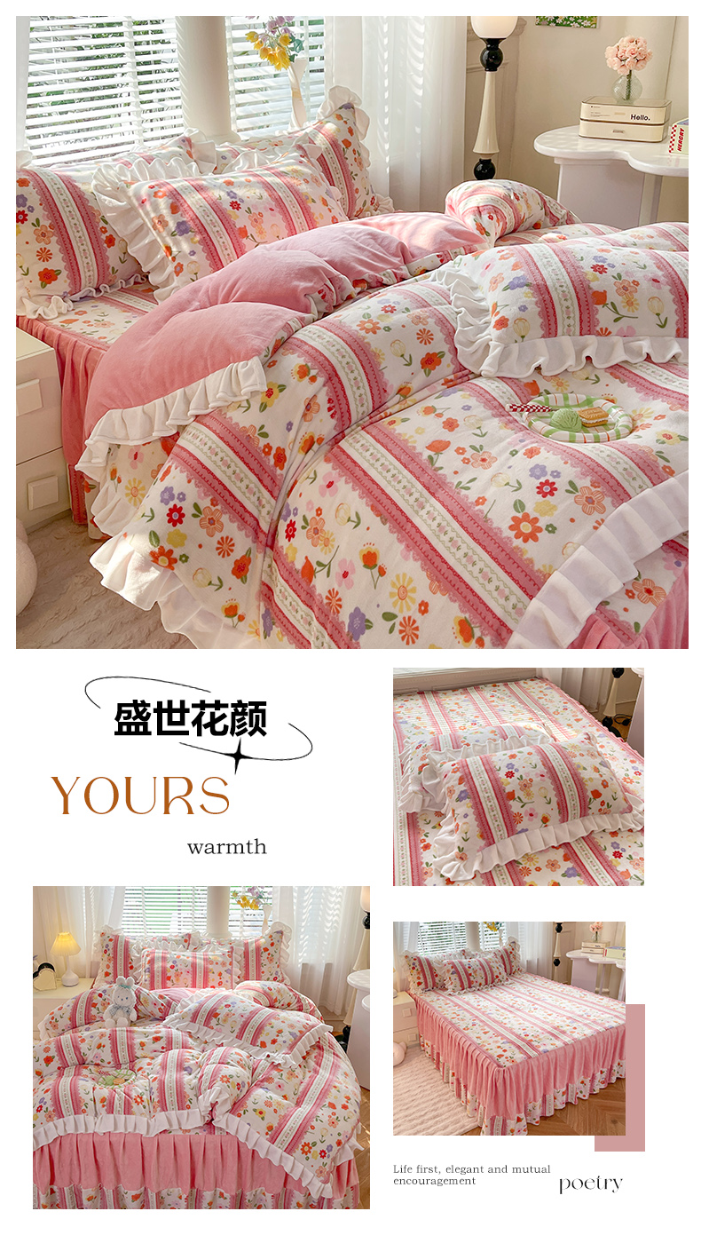 (总)金盛皇朝家纺 2024新款双层花边牛奶绒夹棉床盖四件套,繁花米兔,花影如梦,萌宝熊猫,甜甜宝贝,兔兔吉祥,心心相印,悠悠米咖,紫韵格调
