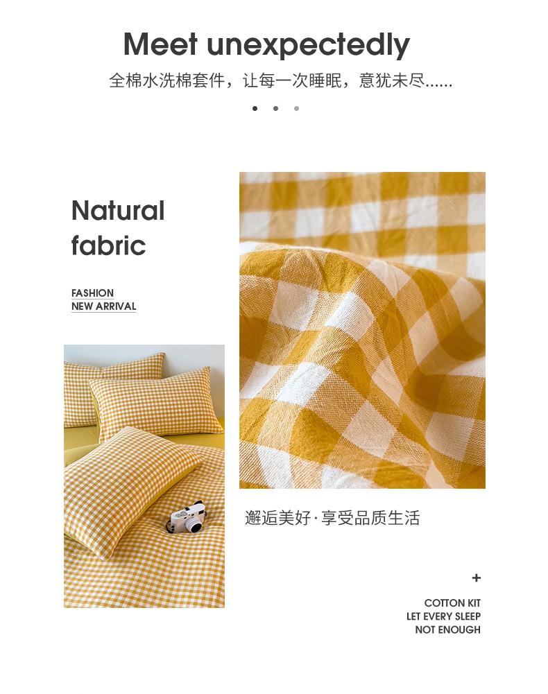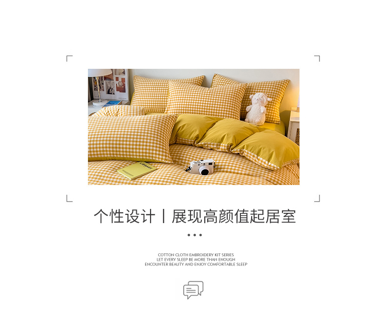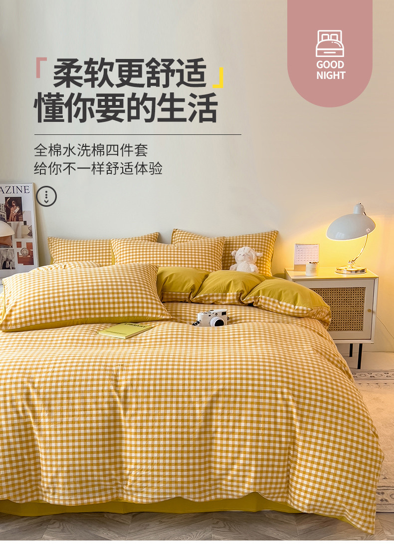 当前位置: 91家纺网 > 商品网购 > 床品套件 > 四件套 > 水洗棉四件套 > 芃成 2023新款全棉水洗棉四件套 黄小格