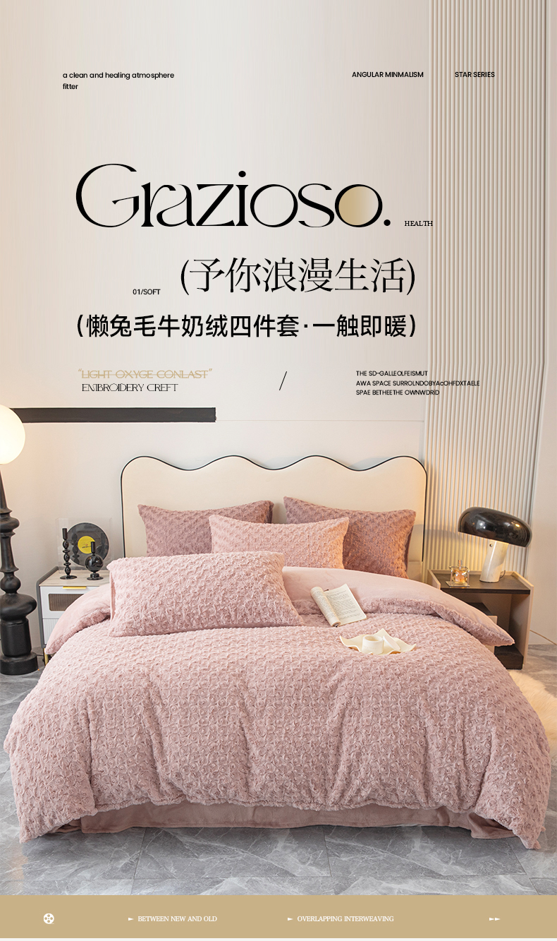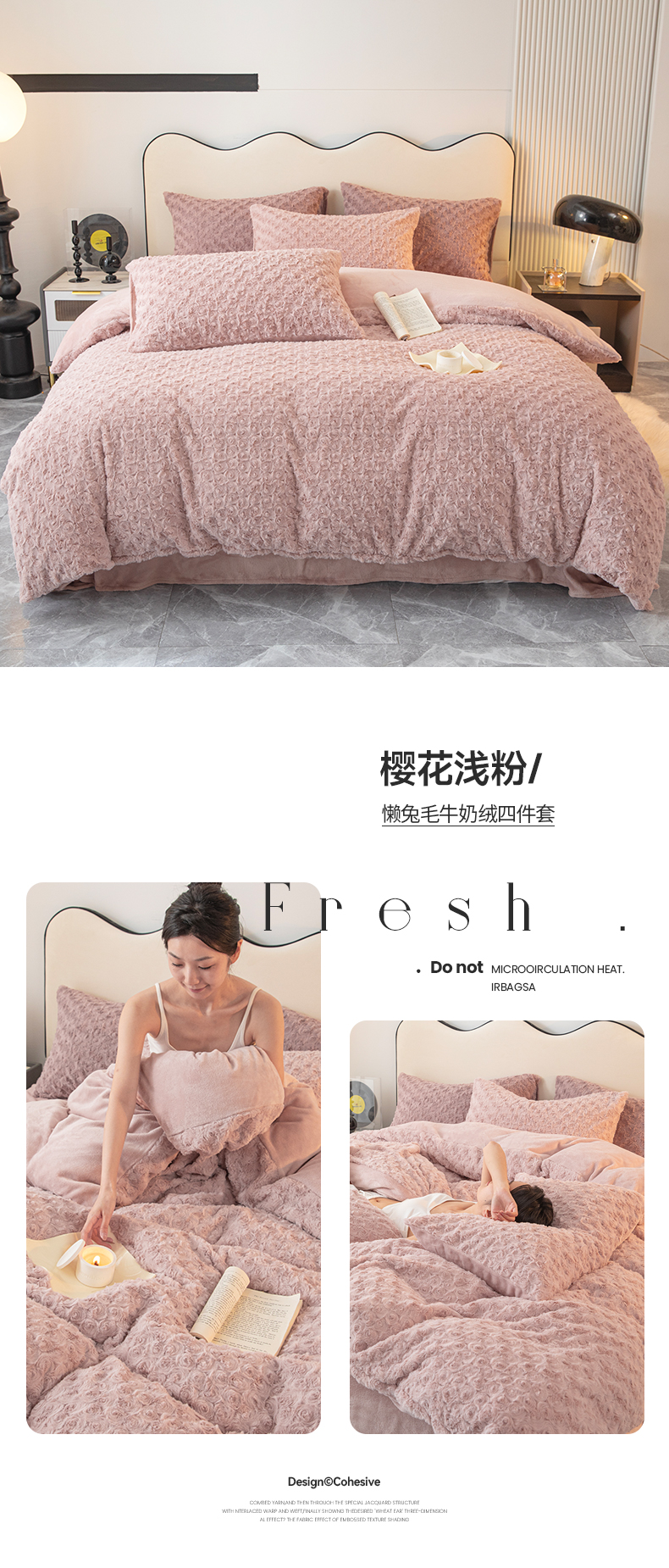 当前位置: 91家纺网 > 商品网购 > 床品套件 > 四件套 > 牛奶绒四件套 > 寐眠 2023新款懒兔毛牛奶绒四件套玫瑰 樱花浅粉