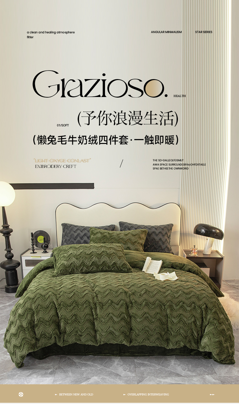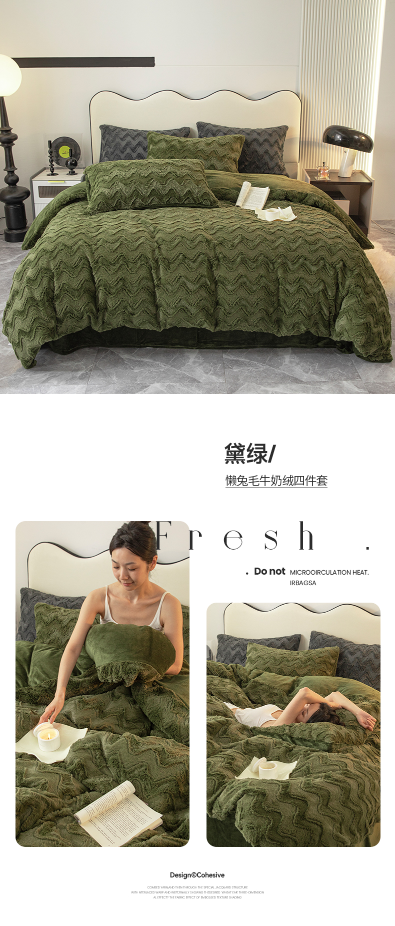 当前位置: 91家纺网 > 商品网购 > 床品套件 > 四件套 > 牛奶绒四件套 > 寐眠 2023新款懒兔毛牛奶绒四件套水波纹 黛绿