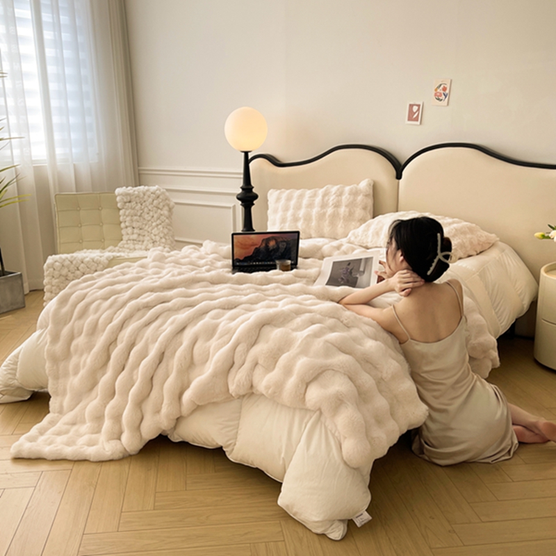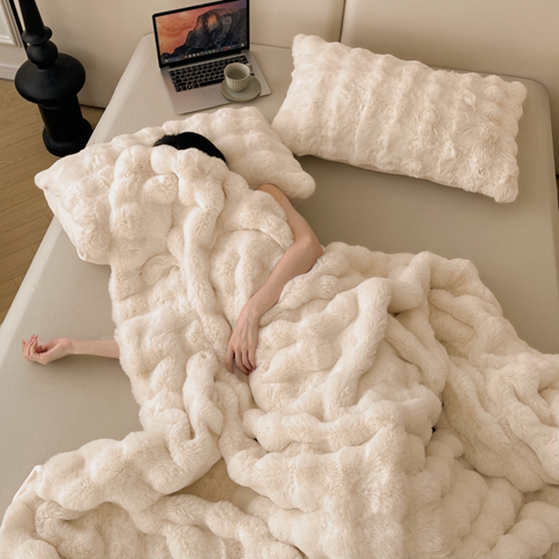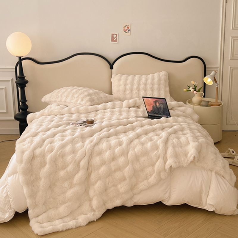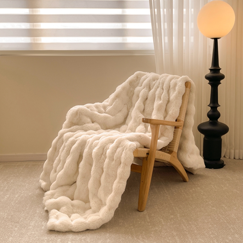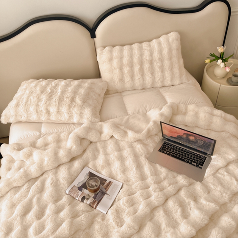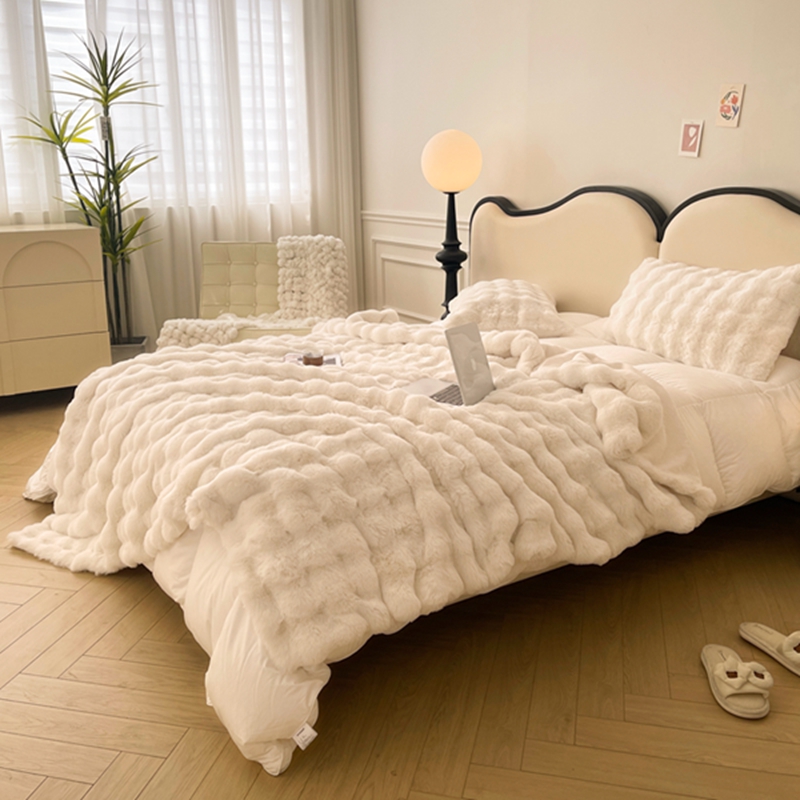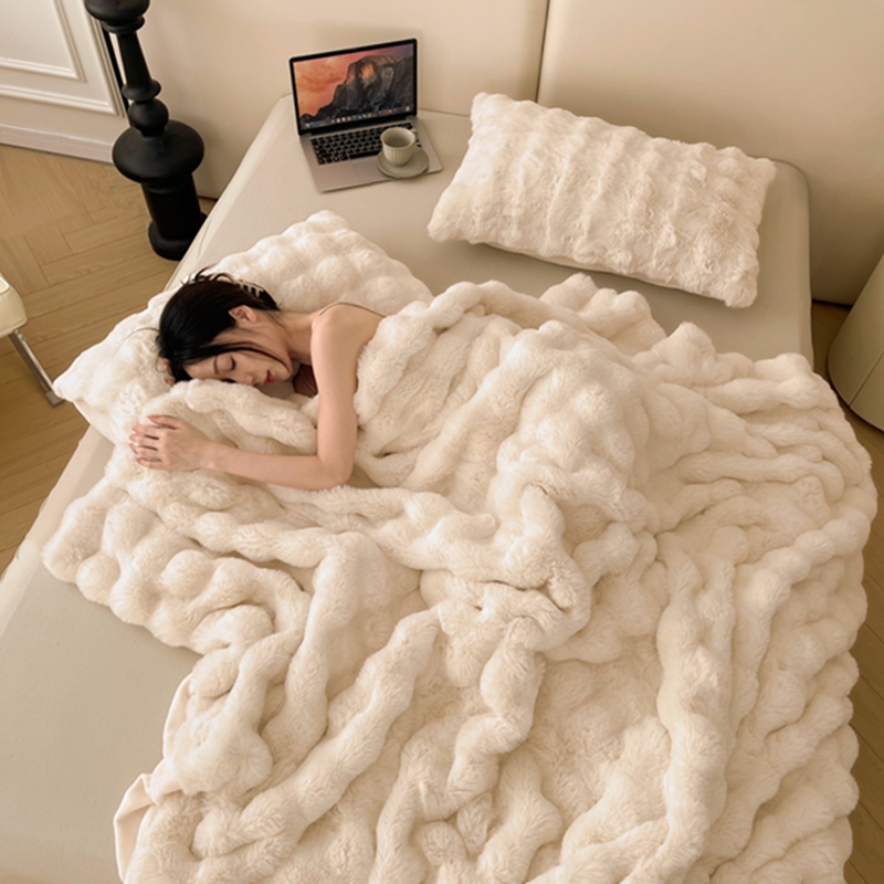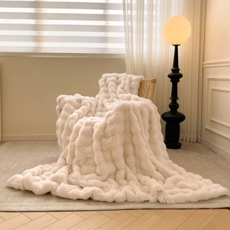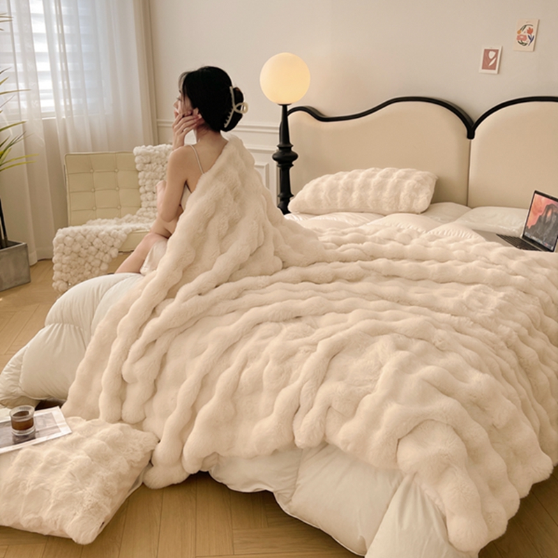 商品名称:寐眠 2024新款托斯卡纳兔毛绒加厚双层毯 米白