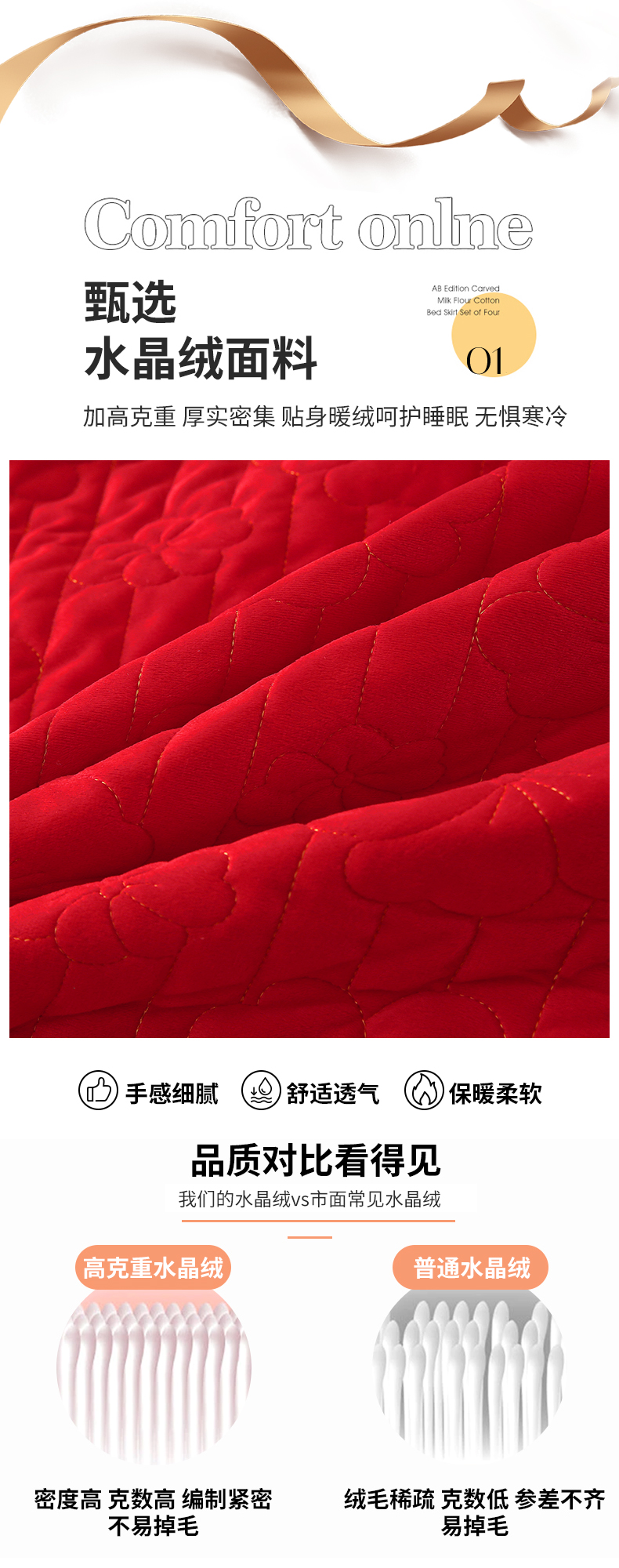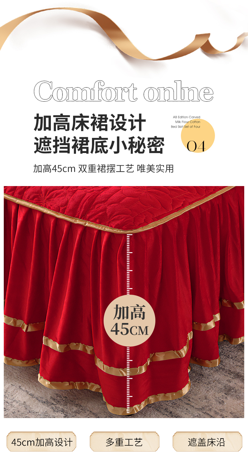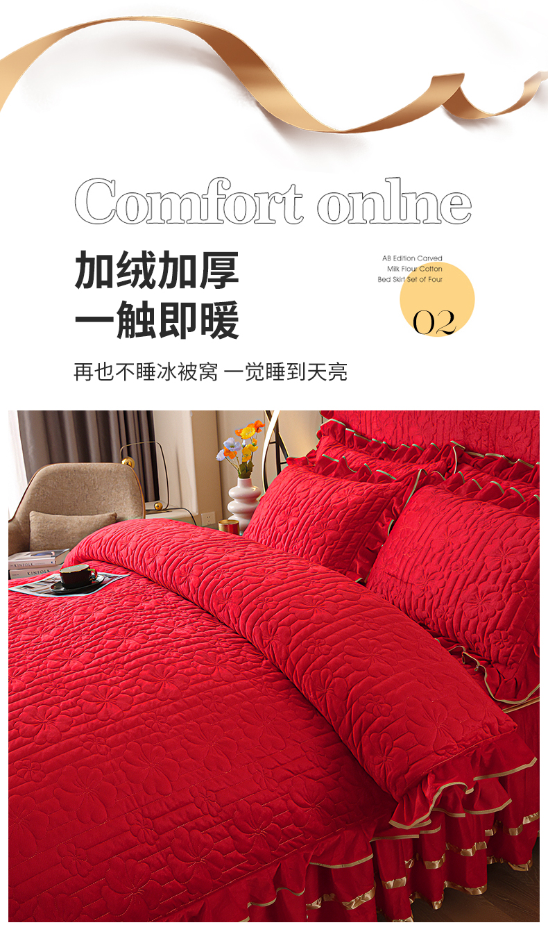 (总)屹成家纺2025新款水晶绒夹棉绗缝床裙四件套(塞纳河畔)四件套起售价不低于230元,大红,豆沙,翡翠绿,粉玉,橄榄绿,蔚蓝,银灰
