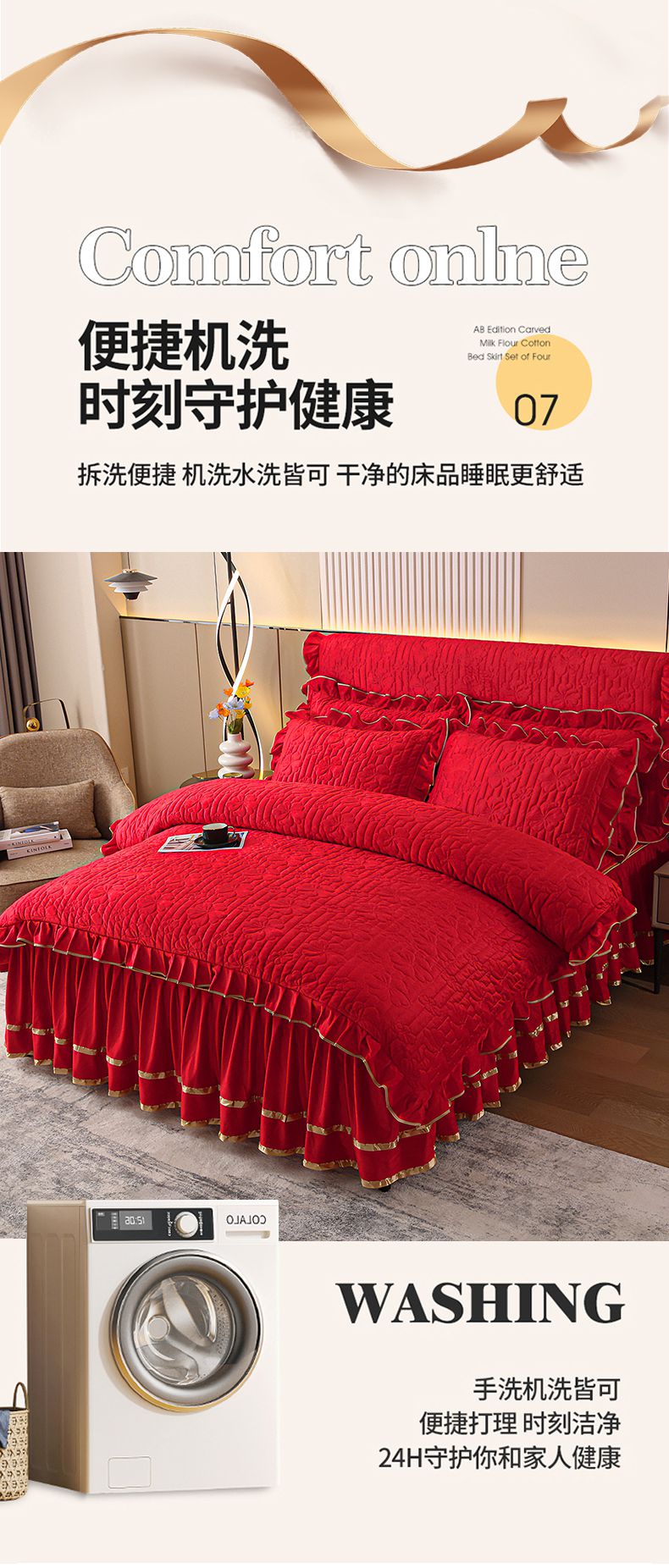 (总)屹成家纺 2025新款水洗棉床裙款四件套-倾城(四件套控价208元起),倾城-大红,倾城-豆沙,倾城-粉玉,倾城-橄榄绿,倾城-卡其,倾城-浅紫,倾城-银灰