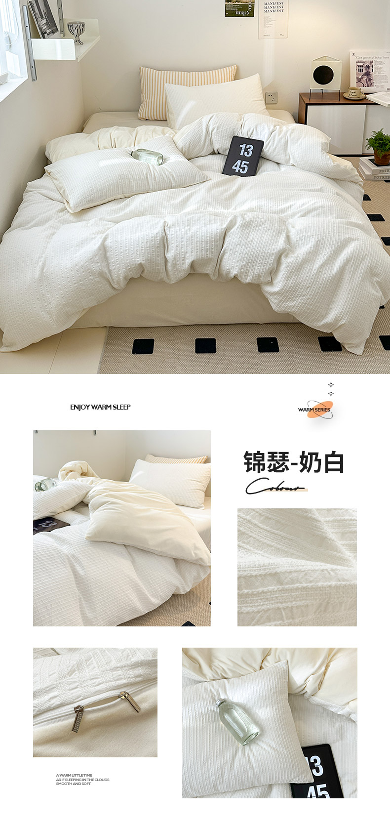 商品名称:怡家居 2023新款色织棉麻提花加绒四件套 锦瑟-奶白