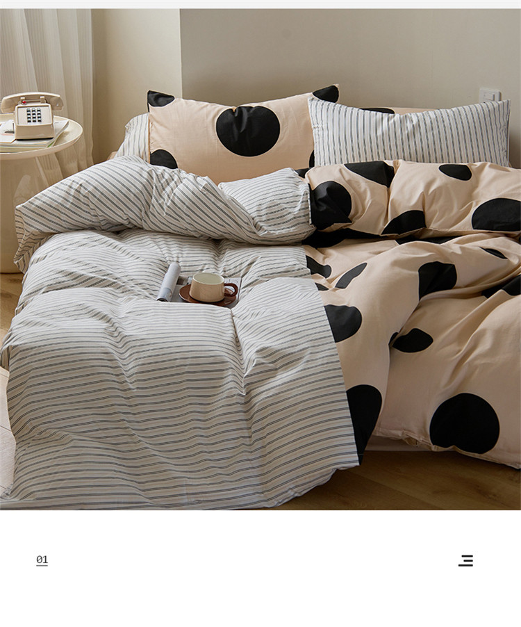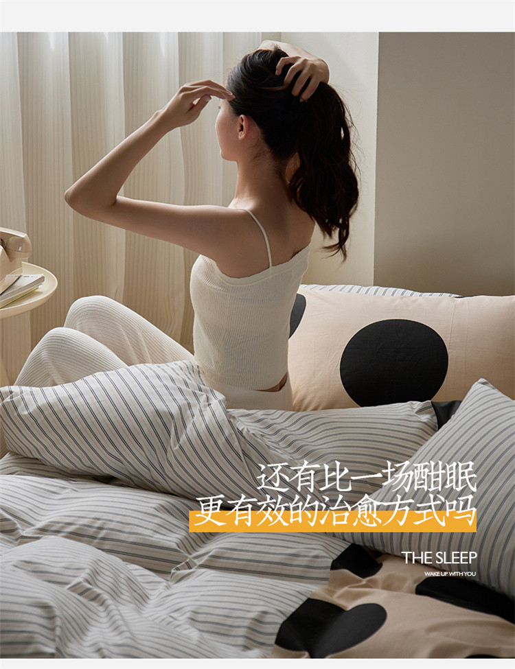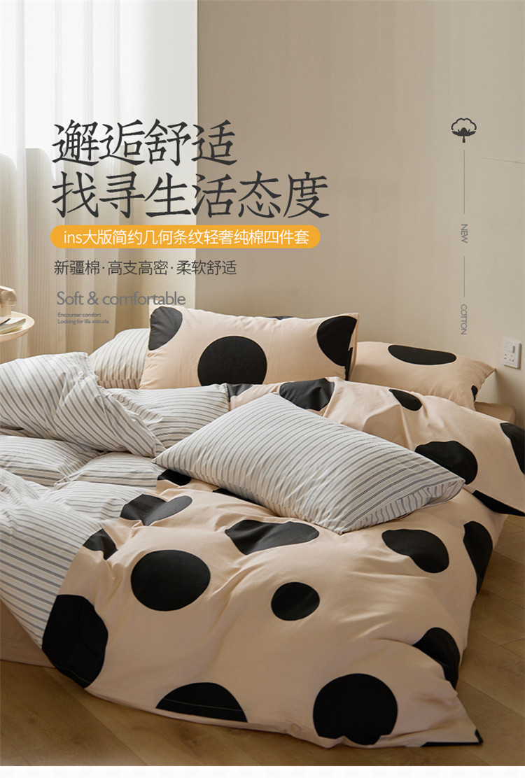 (总)桃子 新款ins博主大版简约几何条纹轻奢拼接条纹纯棉四件套