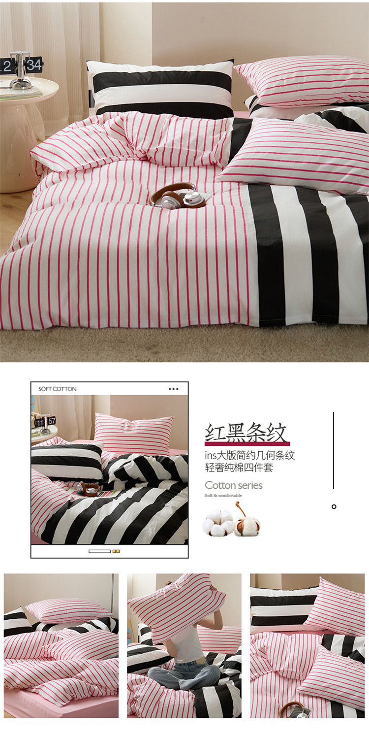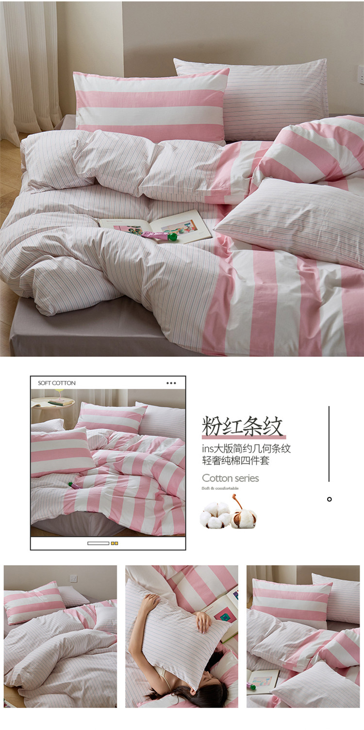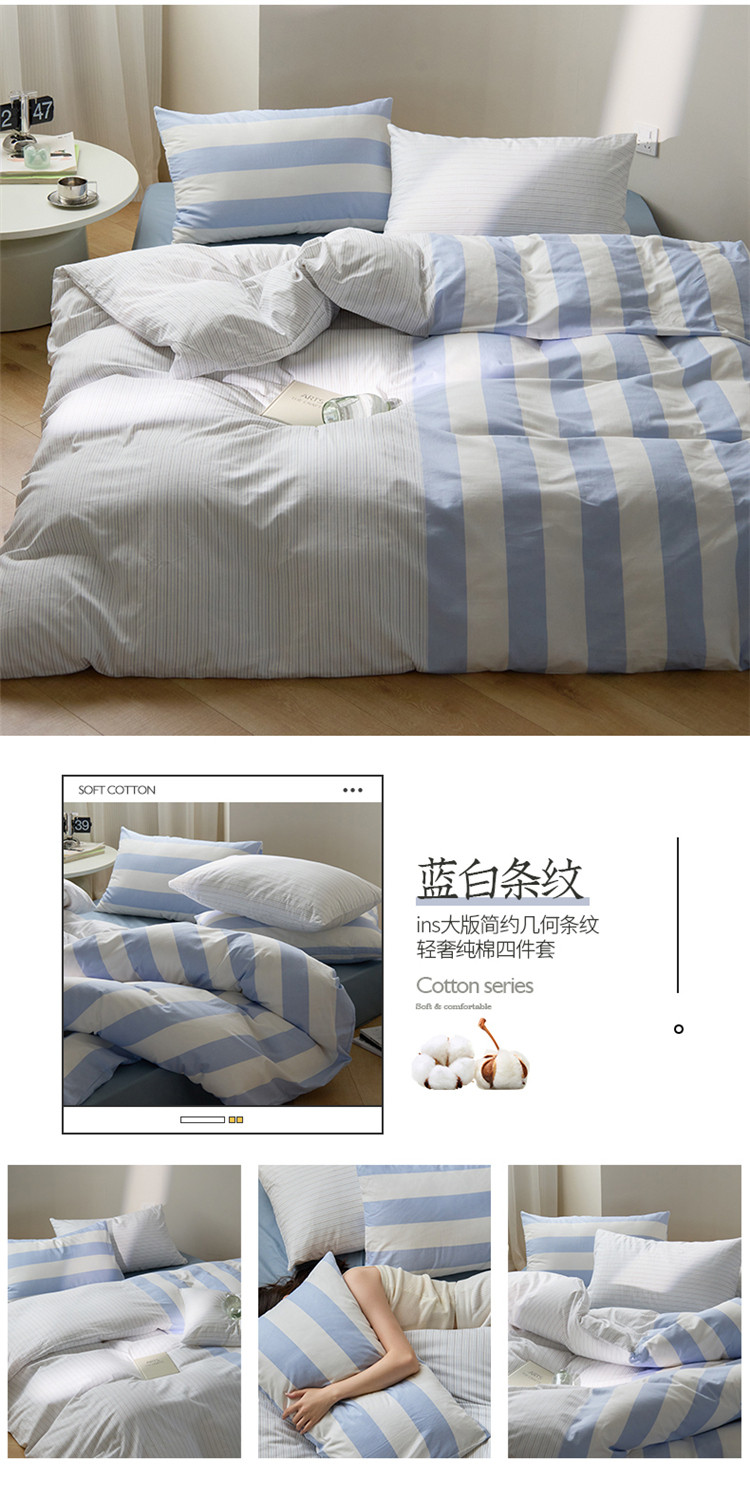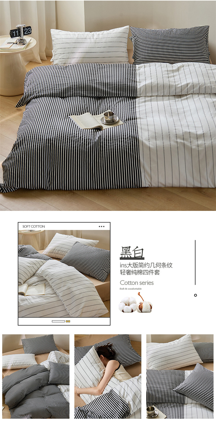 商品名称:(总)桃子 新款ins博主大版简约几何条纹轻奢拼接条纹纯棉四件套