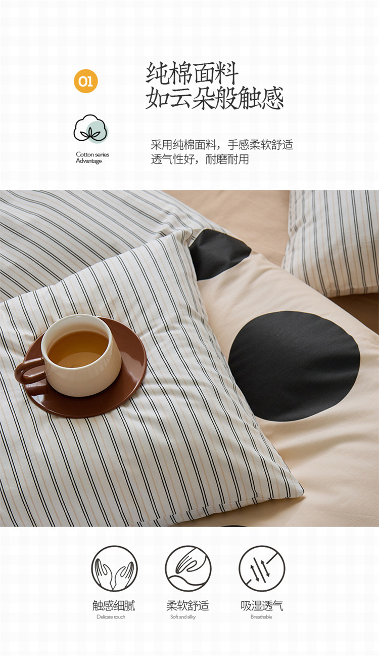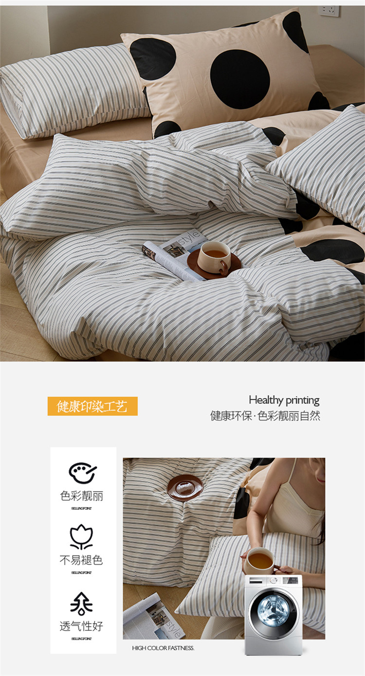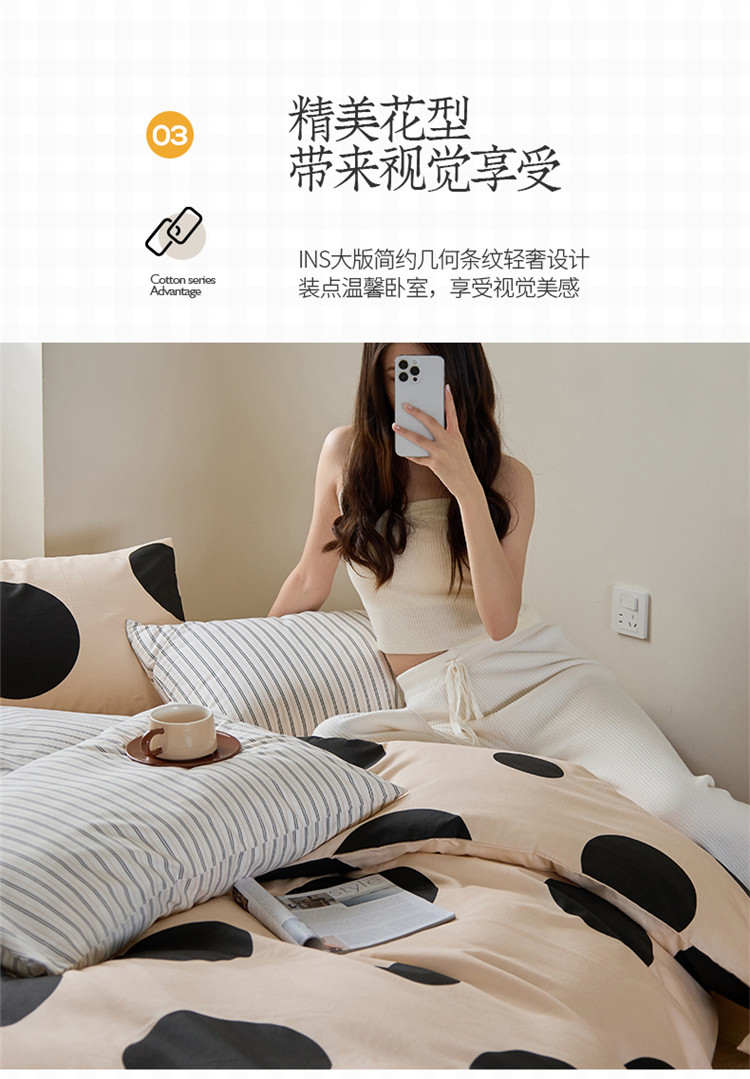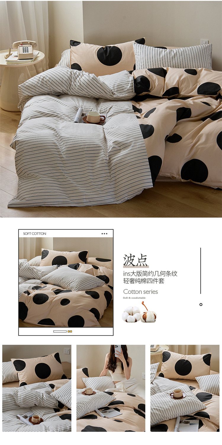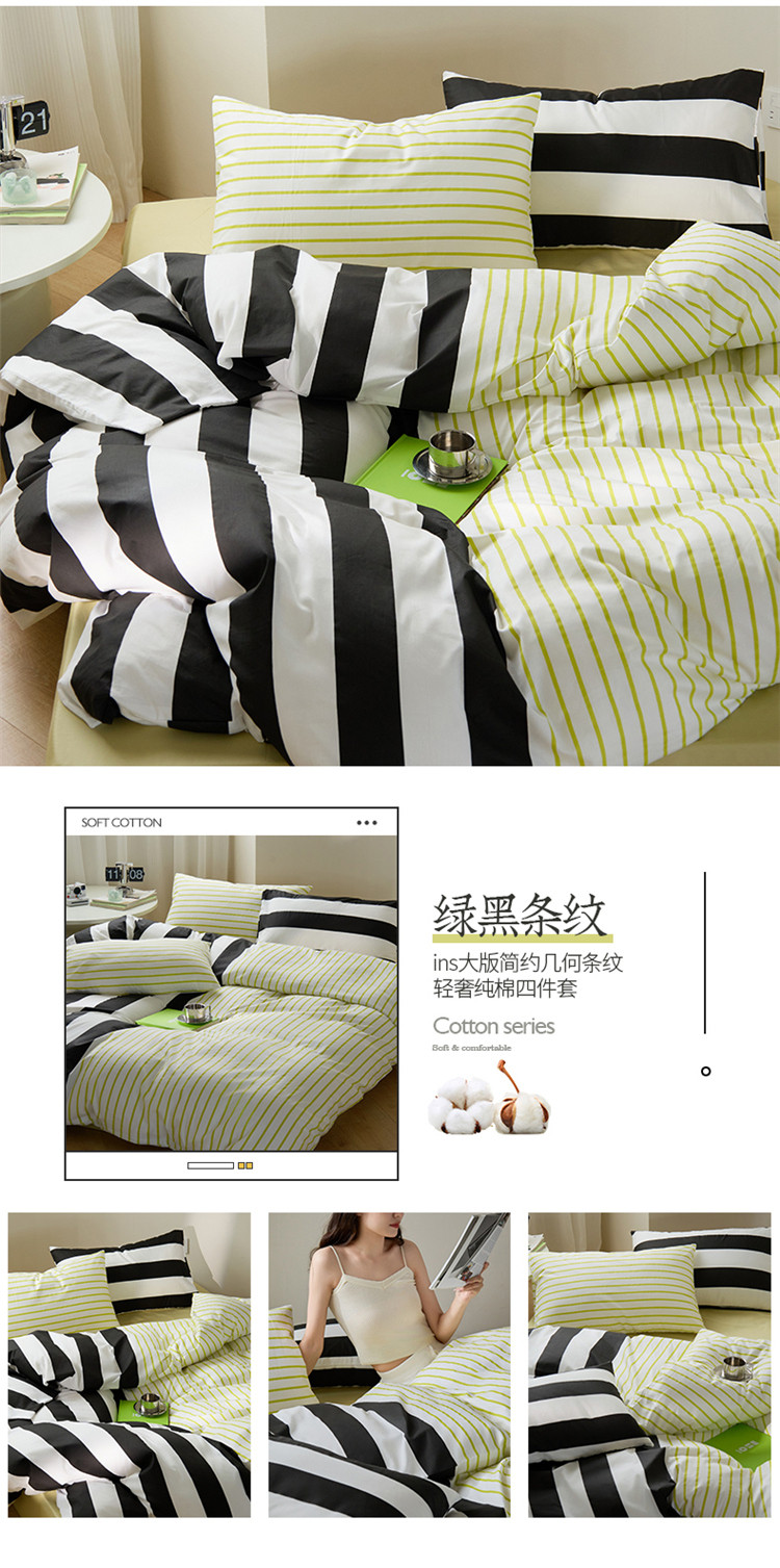 商品名称:(总)桃子 新款ins博主大版简约几何条纹轻奢拼接条纹纯棉四件套