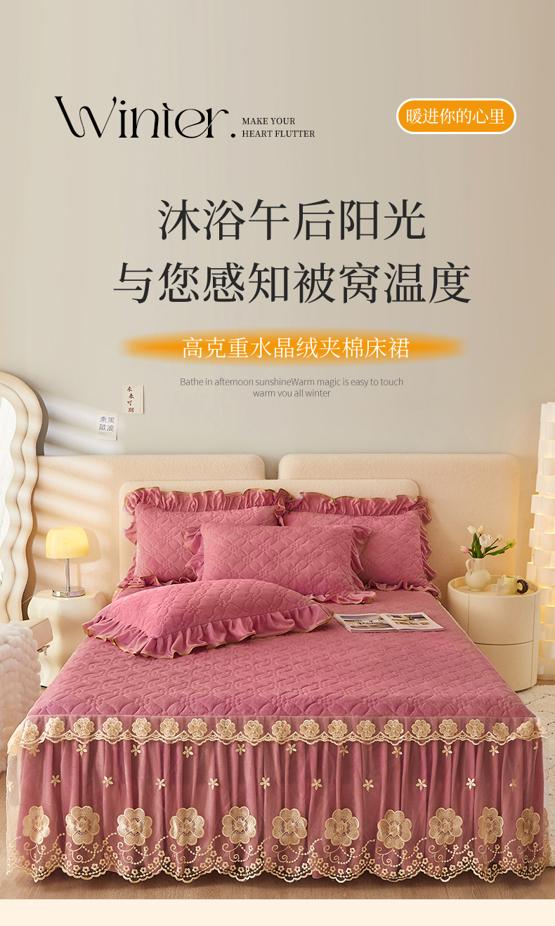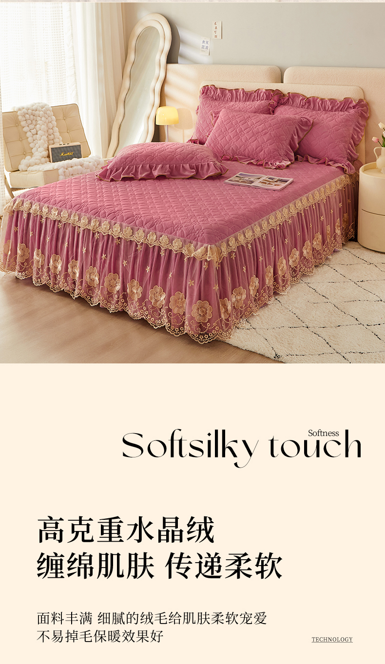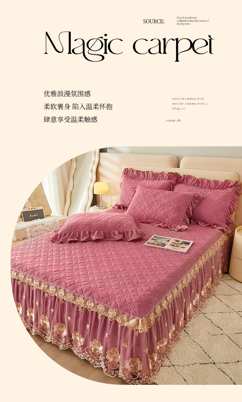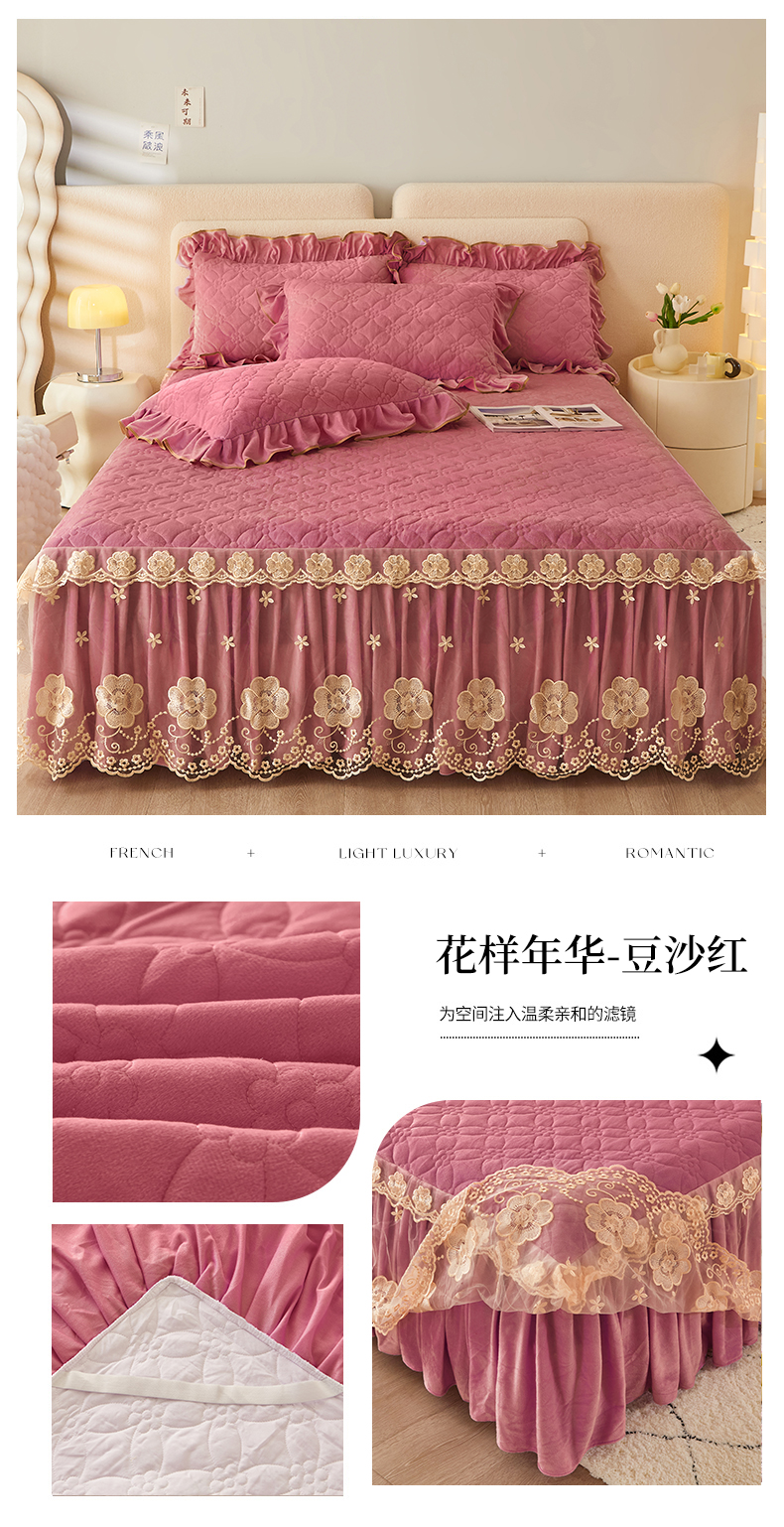 当前位置: 91家纺网 > 商品网购 > 床品套件 > 四件套 > 全棉普通四件套 > 罗艺轩 2024秋冬新款水晶绒花样年华全夹棉加厚床裙四件套 花样年华-豆沙红