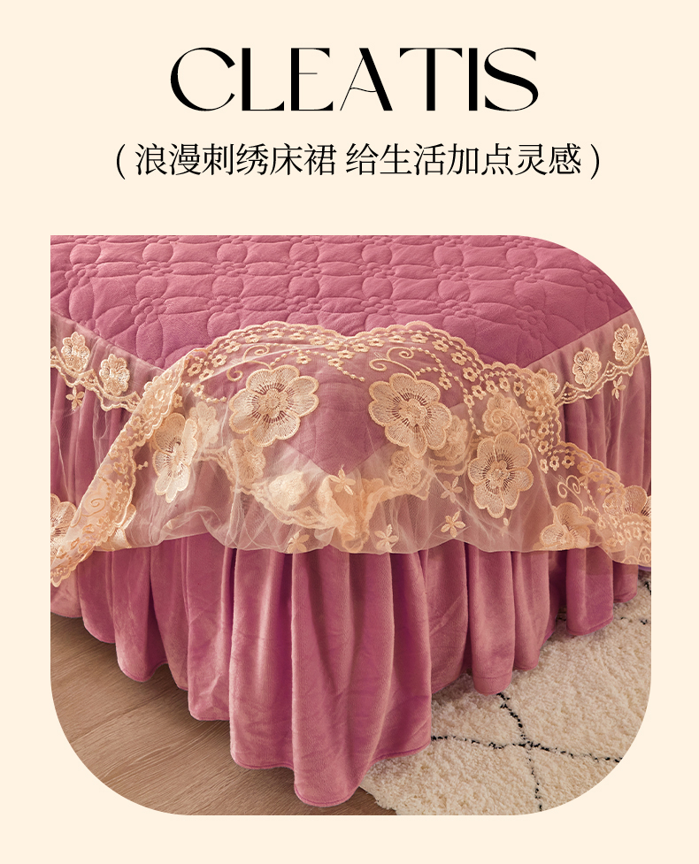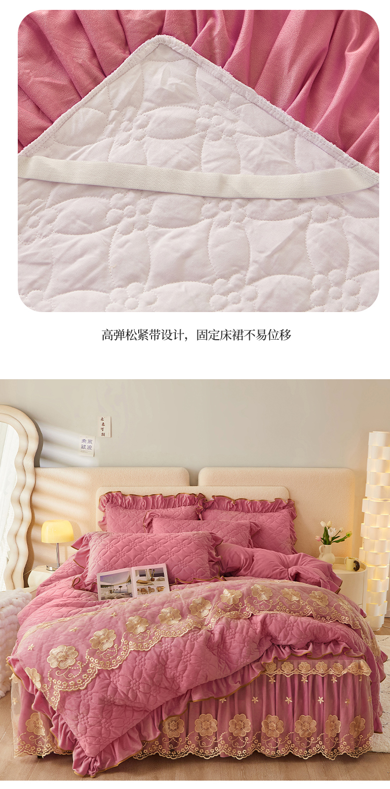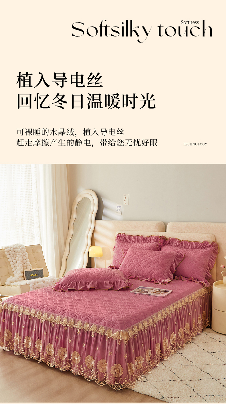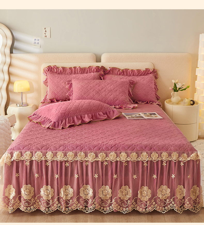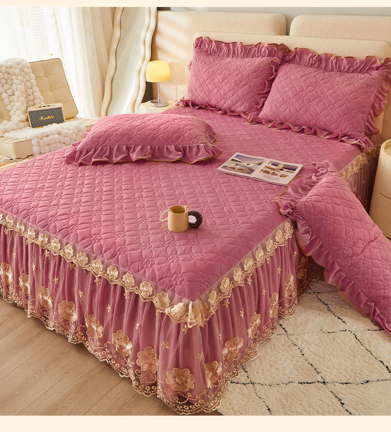 当前位置: 91家纺网 > 商品网购 > 床品套件 > 四件套 > 全棉普通四件套 > 罗艺轩 2024秋冬新款水晶绒花样年华全夹棉加厚床裙四件套 花样年华-豆沙红