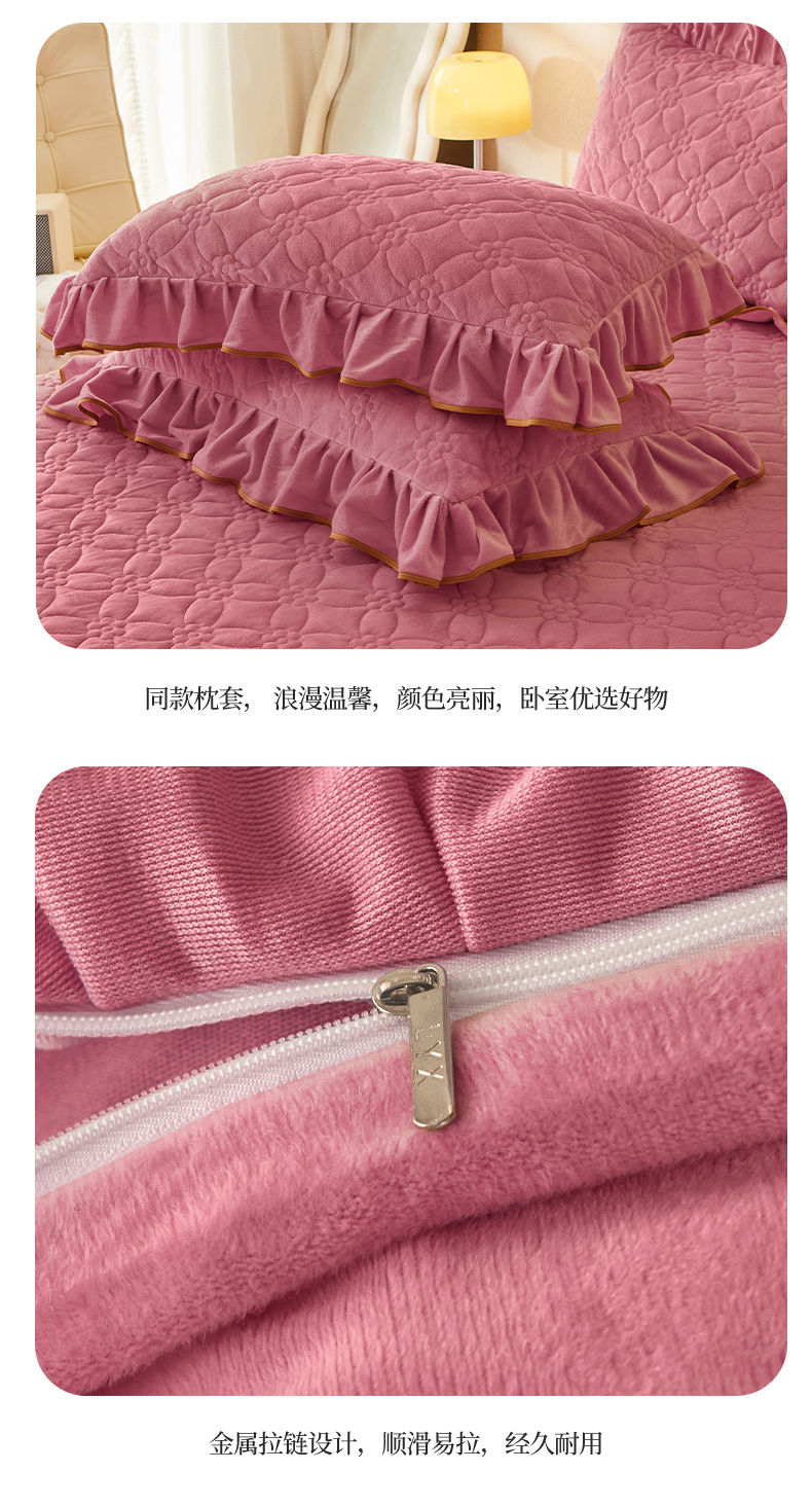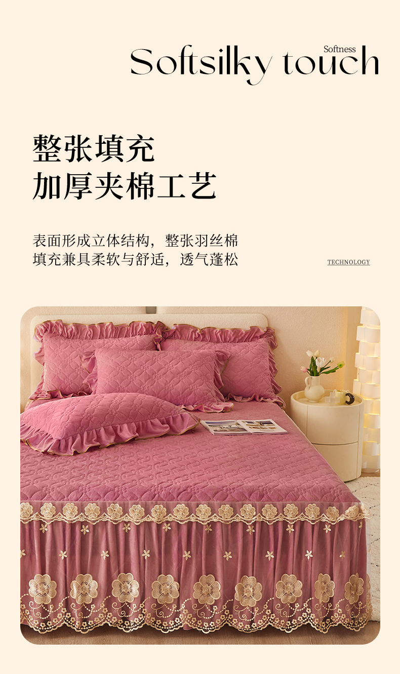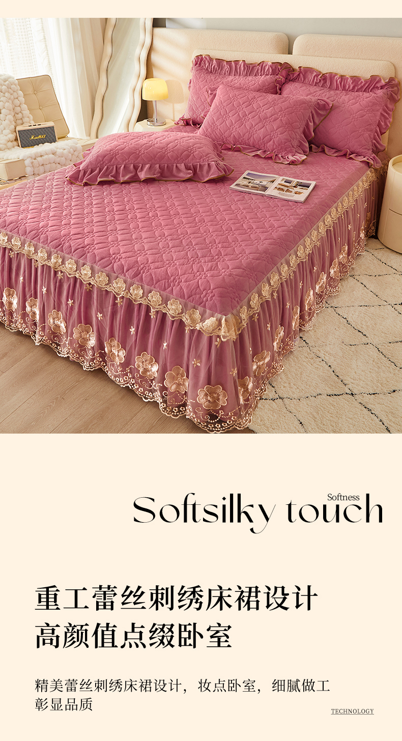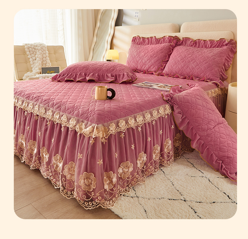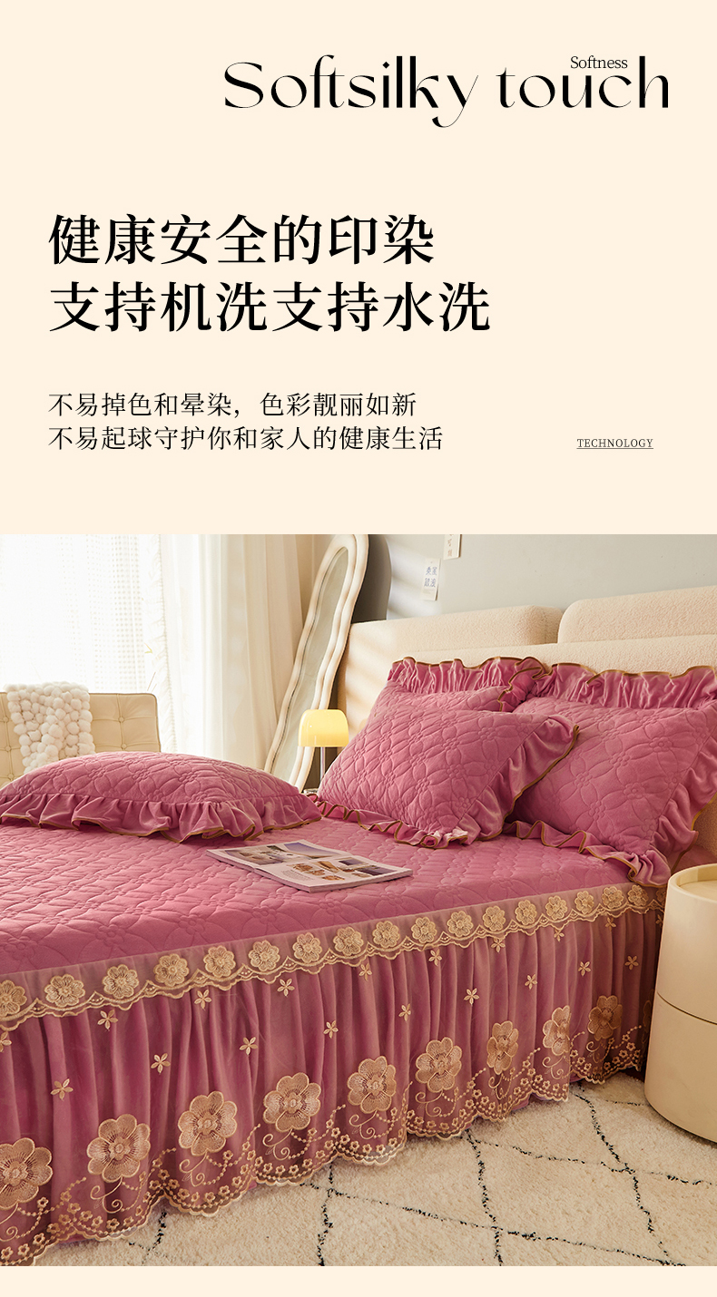 当前位置: 91家纺网 > 商品网购 > 床品套件 > 四件套 > 全棉普通四件套 > 罗艺轩 2024秋冬新款水晶绒花样年华全夹棉加厚床裙四件套 花样年华-豆沙红