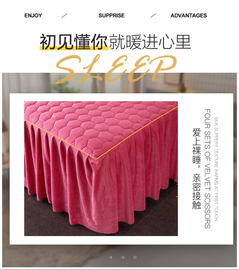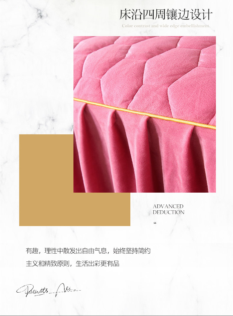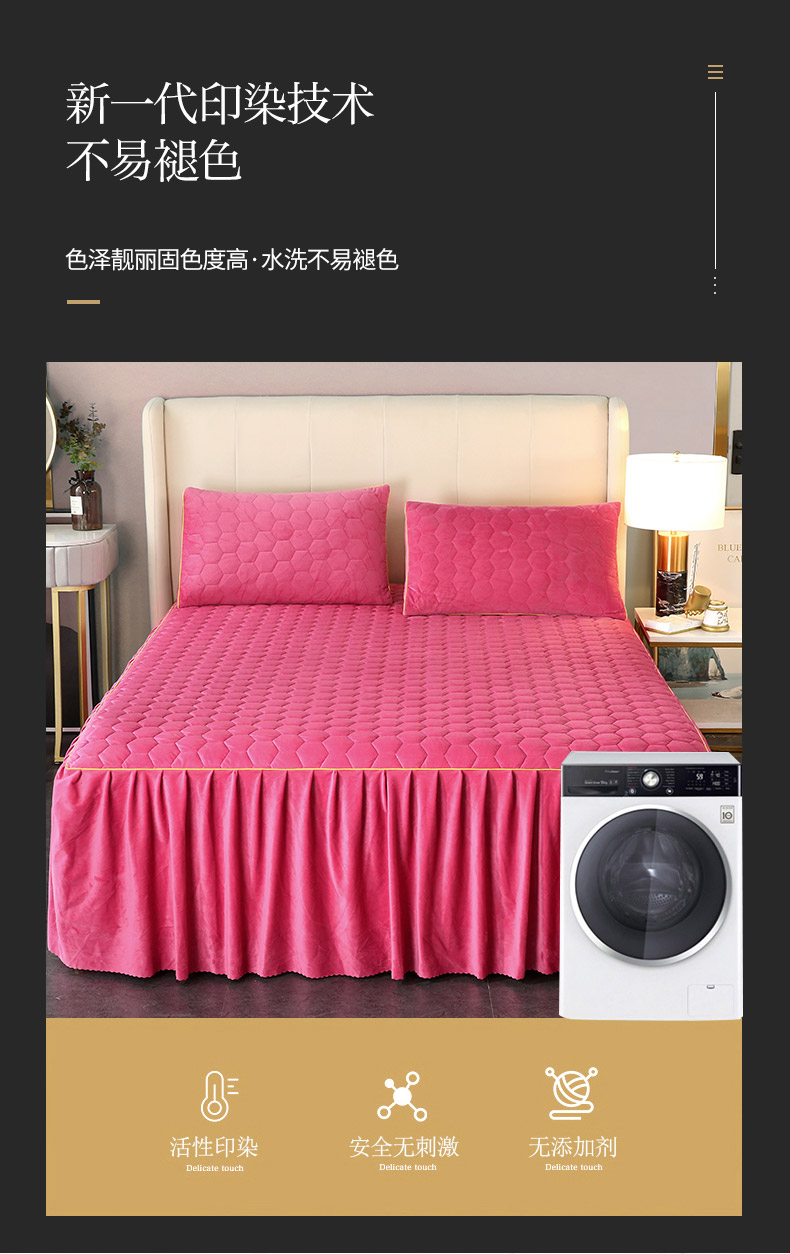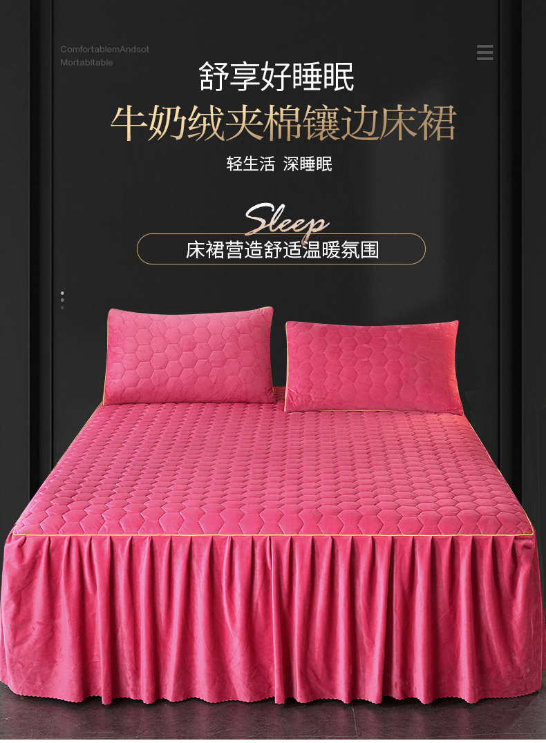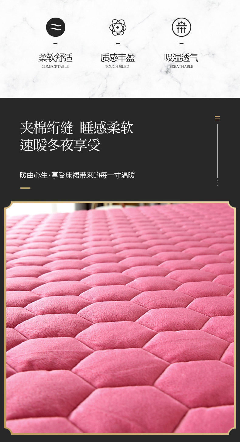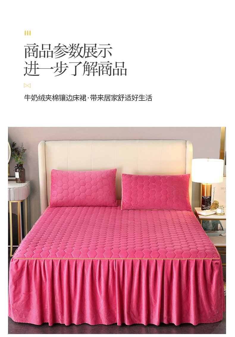 商品名称:胜权家纺 2023新款牛奶绒纯色夹棉单床裙单件保暖三件套席梦思床护垫 唯美-裸豆沙