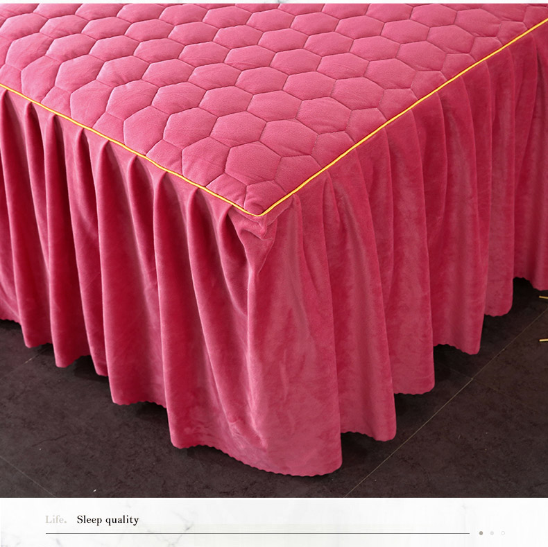 胜权家纺 2023新款牛奶绒纯色夹棉单床裙单件保暖三件套席梦思床护垫 唯美-裸豆沙