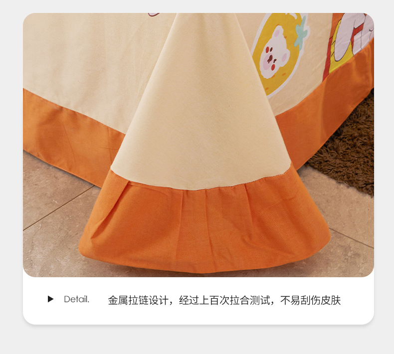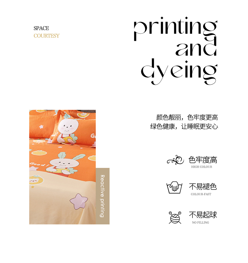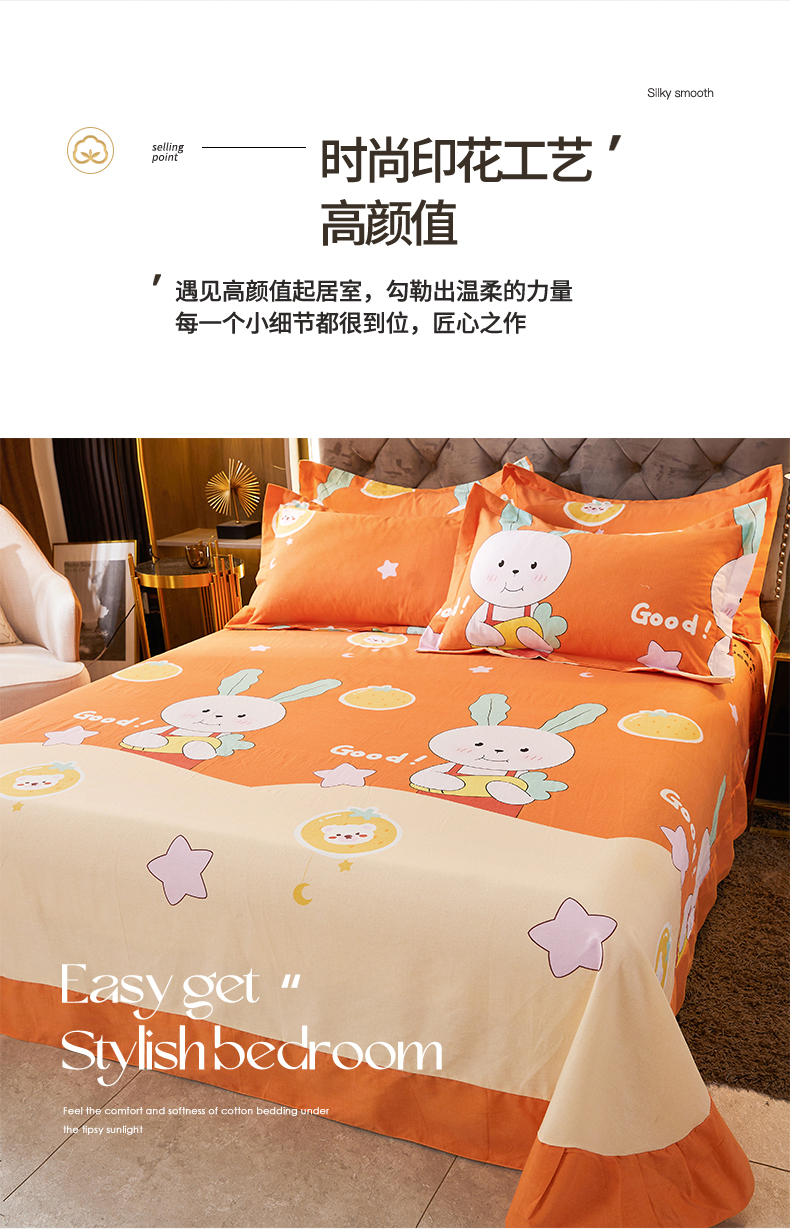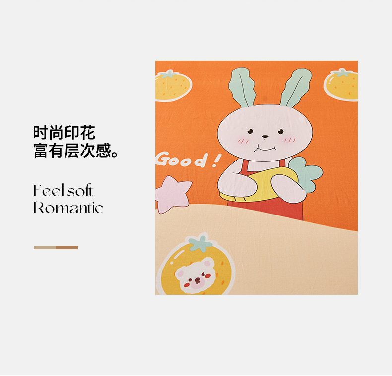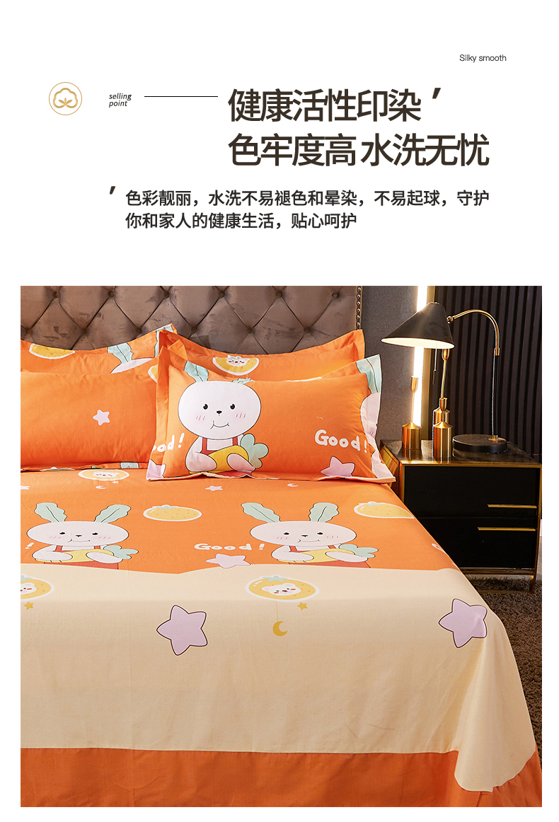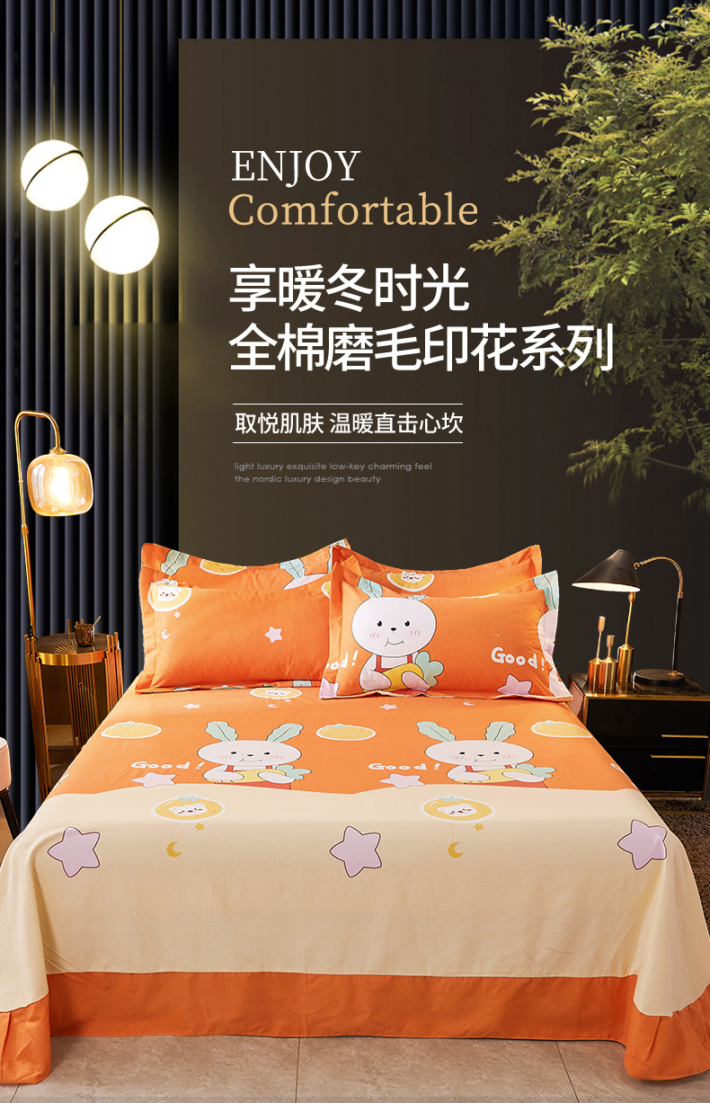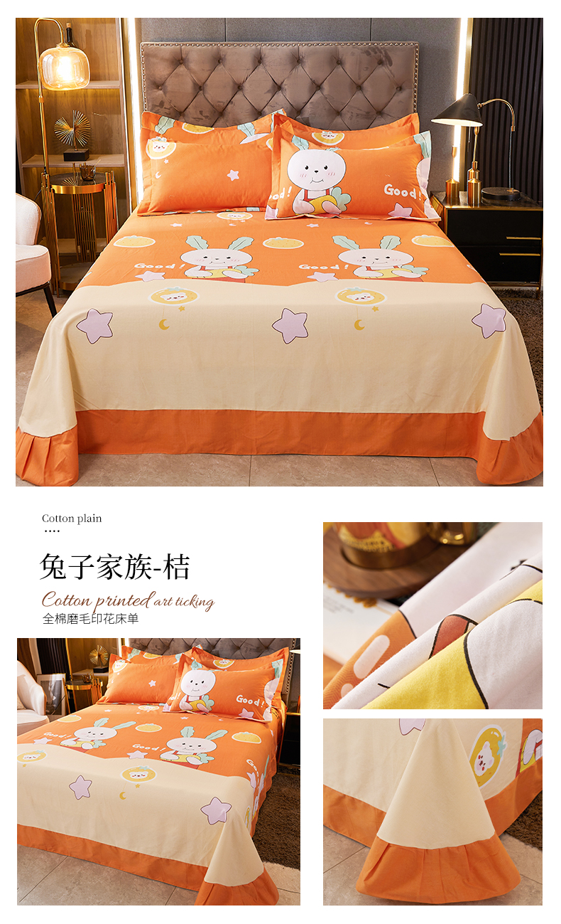 • 91家纺网 家纺一手货源 找家纺 伊而梦 2023新款全棉磨毛印花四件套系列单品床单 兔子家族-桔